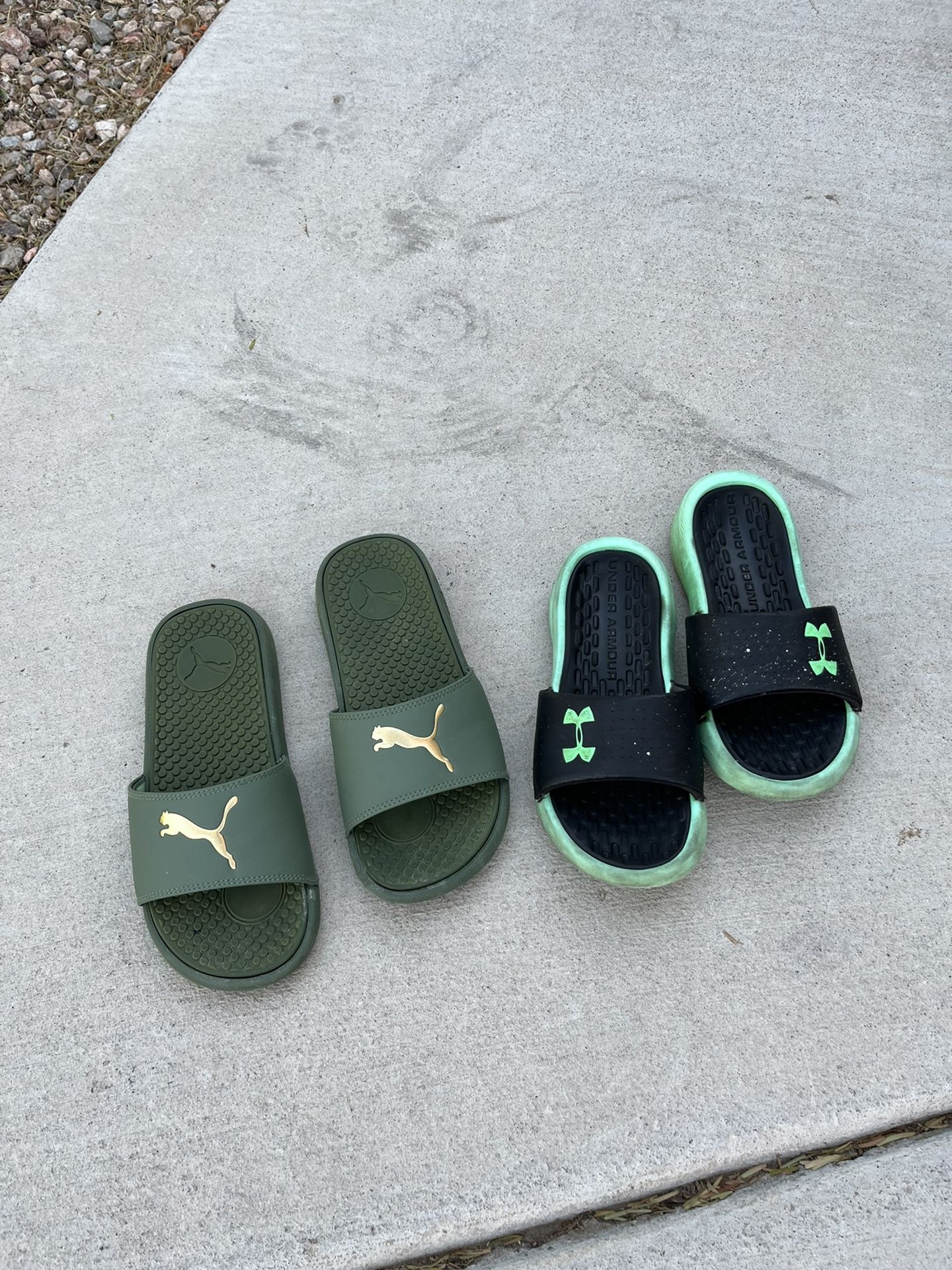 Puma and Under Armour sandals. Size 7