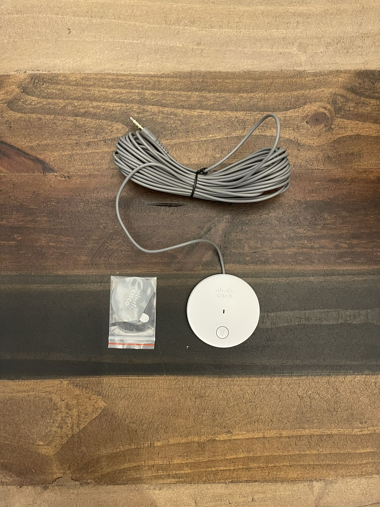 The Cisco Table Microphone with 4-Pin Mini Jack Connector is designed for Cisco video conferencing room systems. It provides omnidirectional coverage for small to large rooms with fixed tables. It can be recessed into the table or rested on a magnetic table plate to keep its 24.6' long cable hidden away, so that your conference tables is tidy. The frequency range is 80 Hz to 20 kHz.