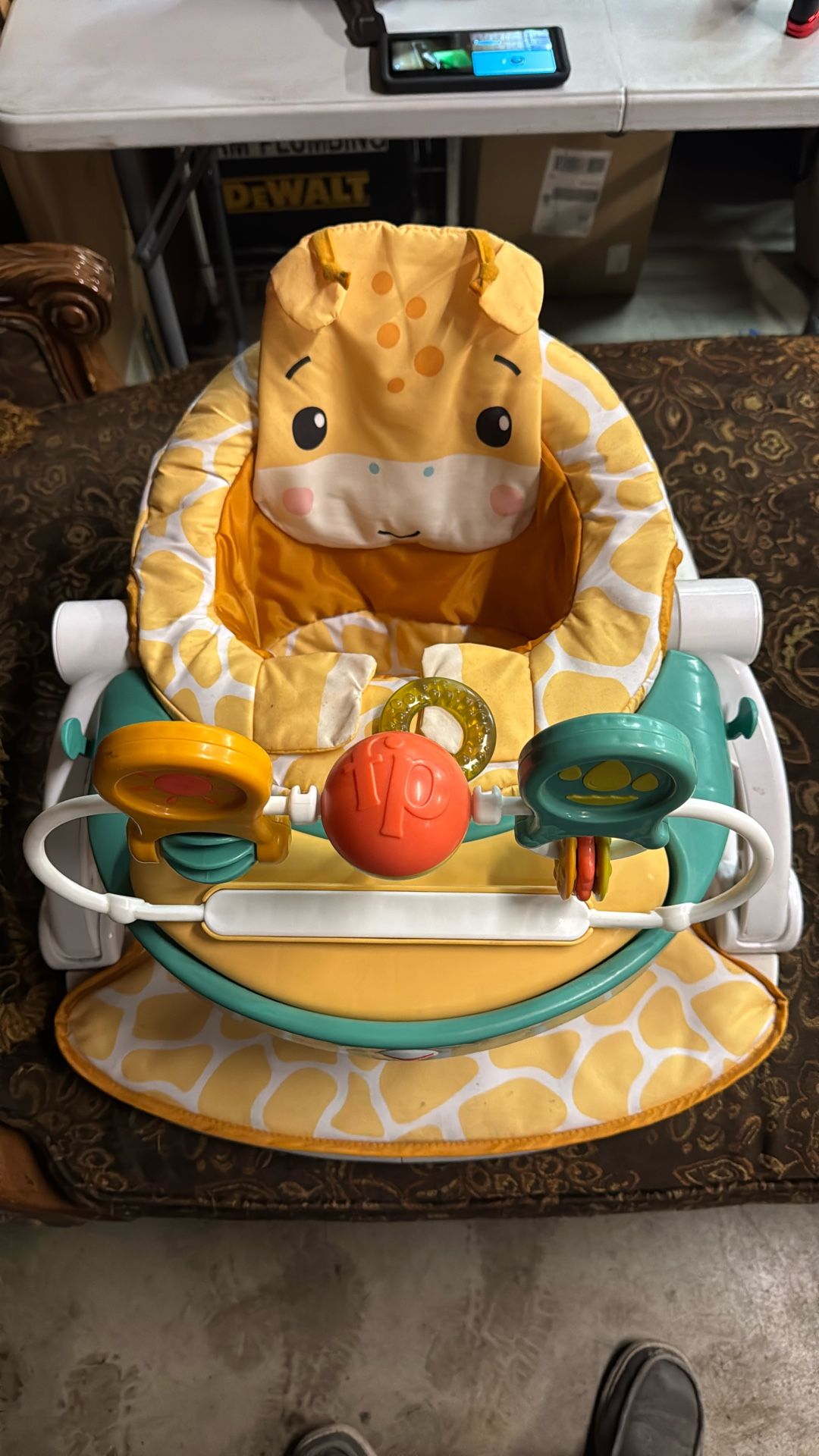 Baby seat with toy bar and snack tray