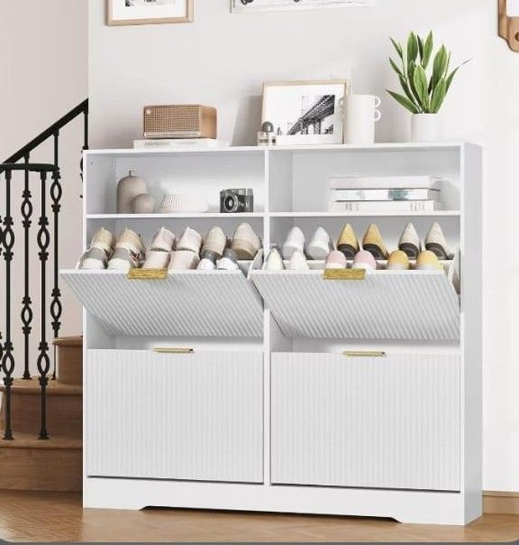 Slim entryway shoe storage cabinet, shoe organizer cabinet with doors, 4 hidden drop-down drawers, ultra-thin wooden shoe Cabinet Brand New still in the box ready for assembled