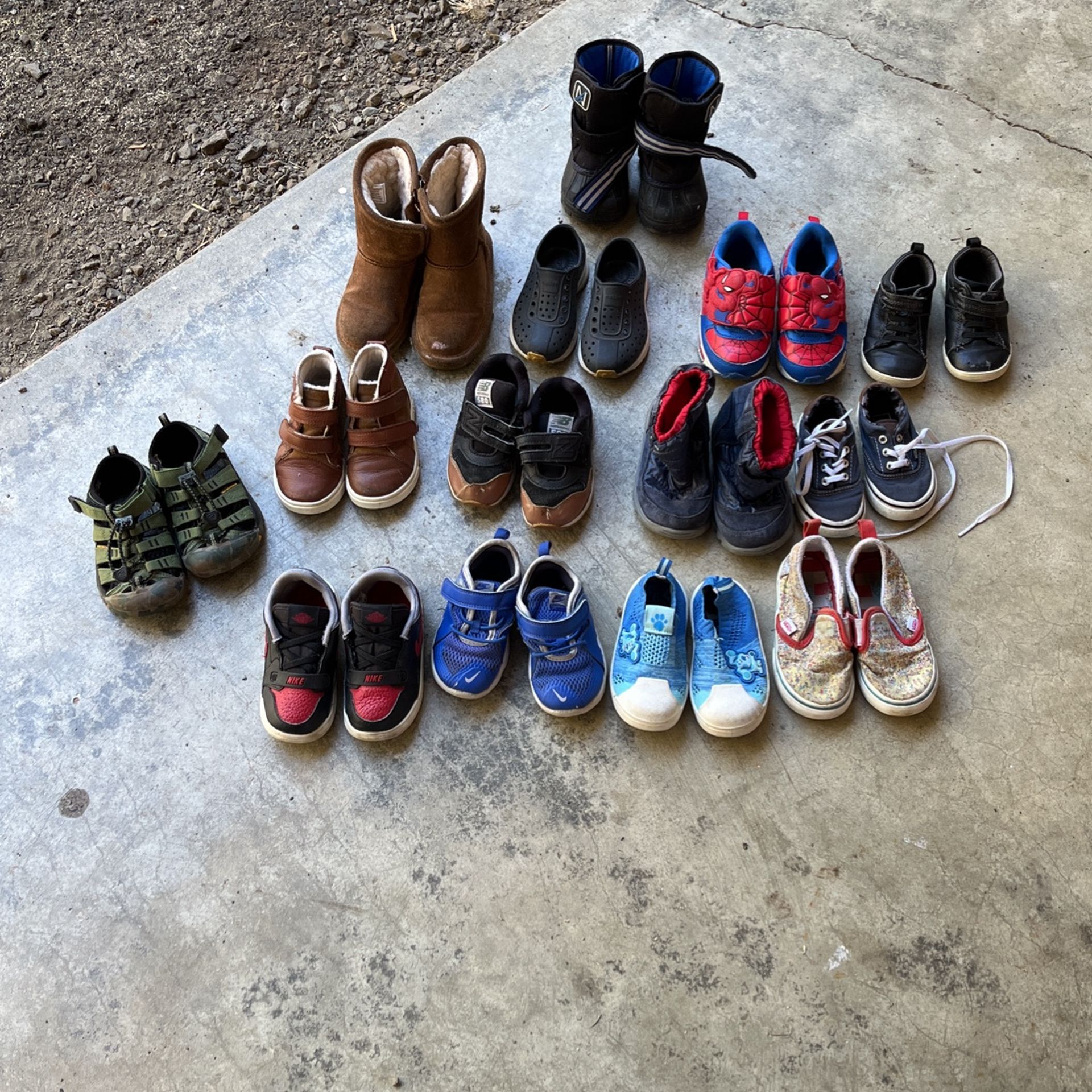 Sizes 5 to 8 toddler shoes and boots Nike , Ugg, keen, vans, etc 14 pairs $25