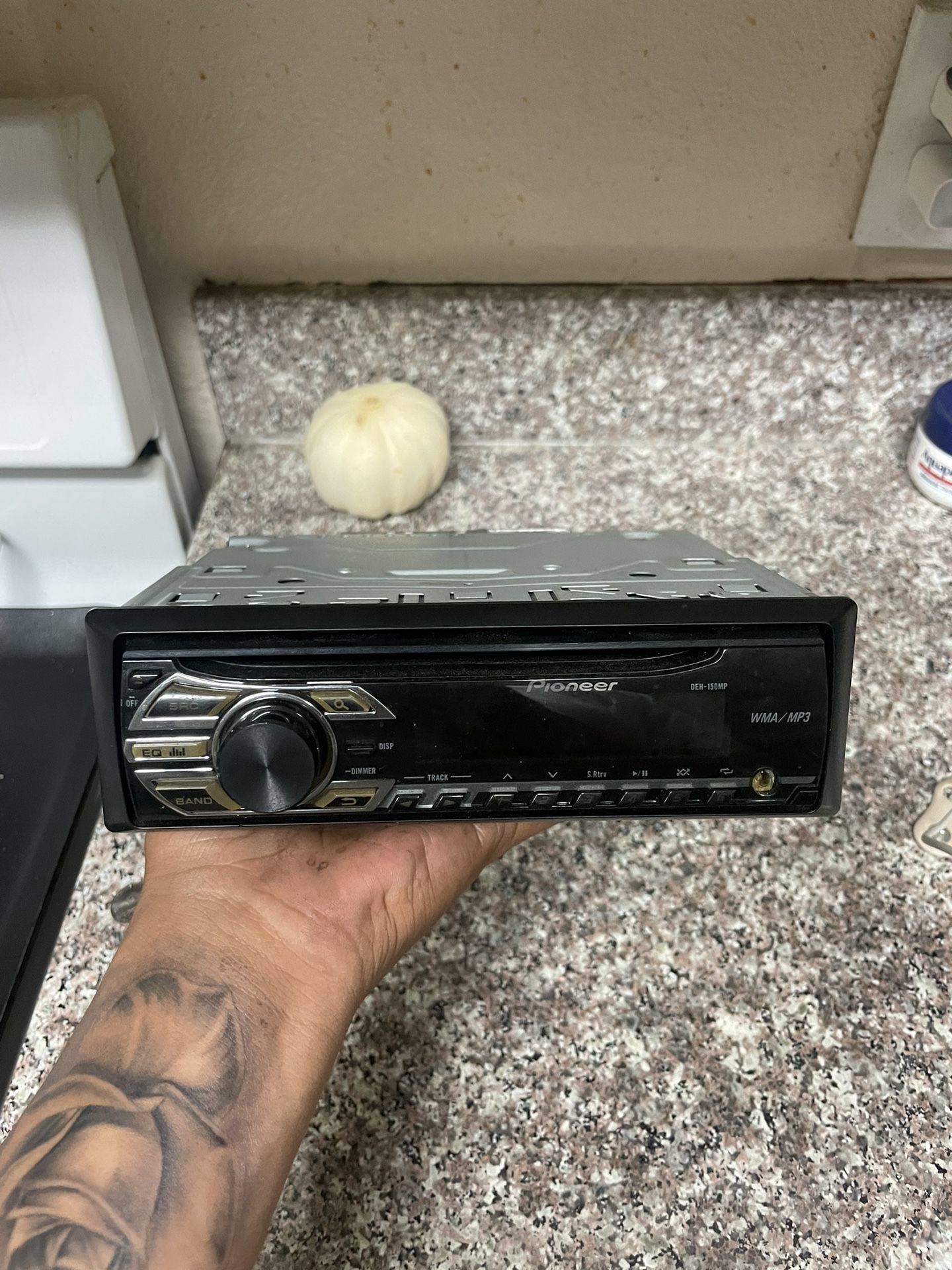 Pioneer stereo, not sure which model it is just got a new so just got it laying around. It’s not Bluetooth but it does have an aux. works perfect buttons function great overall good. 20$ obo