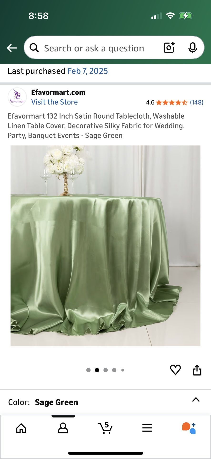 Washable Linen Table Cover, Decorative Silky Fabric for Wedding, Party, Banquet Events in Sage Green. 132in is the largest size sold and can be used for full drape on a 10 person, 6ft diameter round table. For this size table, the linens will be floor length but they can also be used on smaller tables for an elegant puddled drop as shown in the picture. I purchased these this year and used once for my daughter's Quinceañera. They have been washed and folded. I paid $325.75 total for all 25. Willing to let them go for $10 each or $200 if you take them all.