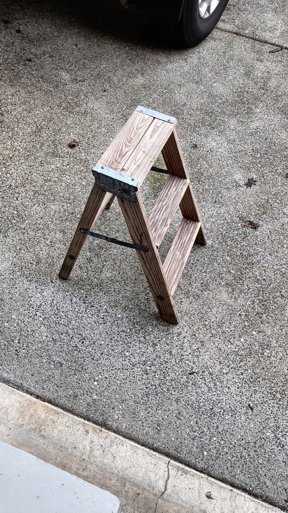 Sturdy wooden folding step ladder in good condition. Opens and closes easily and feels solid when in use. Great for reaching high shelves, light household projects, or garage use. Compact and easy to store. Condition: Good, shows normal wear from use