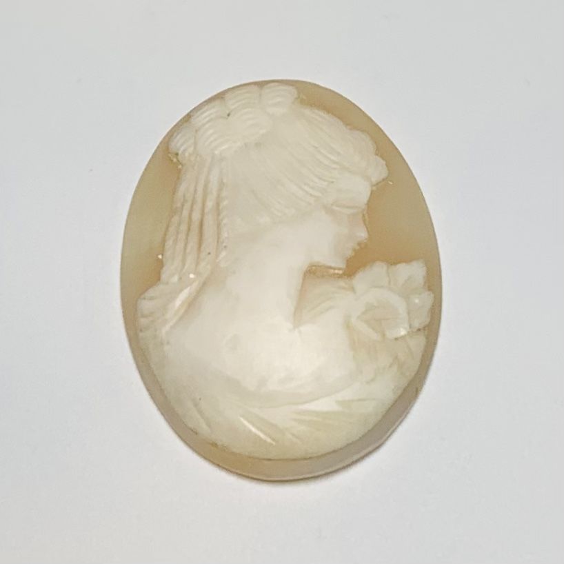 Victorian Loose Hand Carved Detailed Curly Hair Woman Shell Cameo Oval White USED