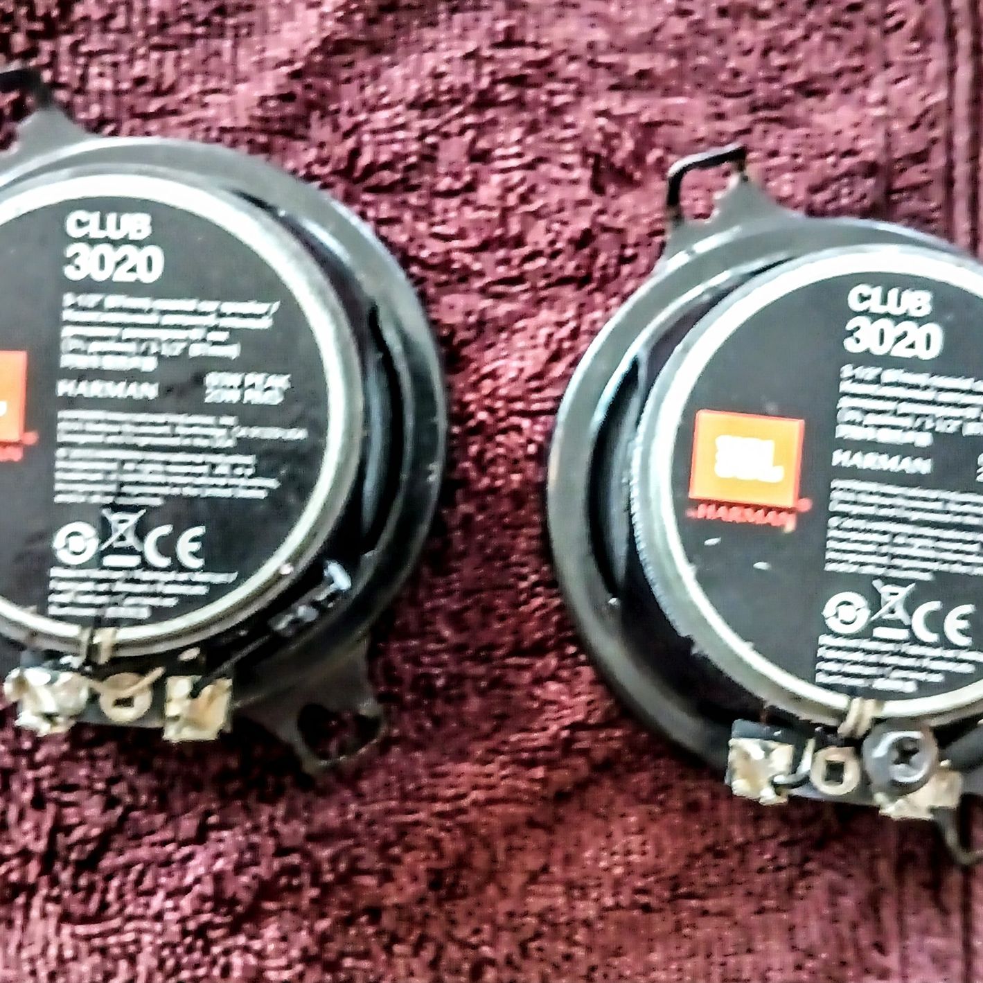 JBL Club 3020 three and a half inch 2-way car speakers new but not in the box a box fell apart they feature a polypropylene plus one woofer cone and a tp1 balance Dome tweeter. The speakers handle up to 25 watts RMS ( 75 Watts Peak power ) They have a frequency response of 75-20,000 H2 & a sensitivity of 86.5 dB The speakers utilize a low independent design to safely draw more power from a car stereo.