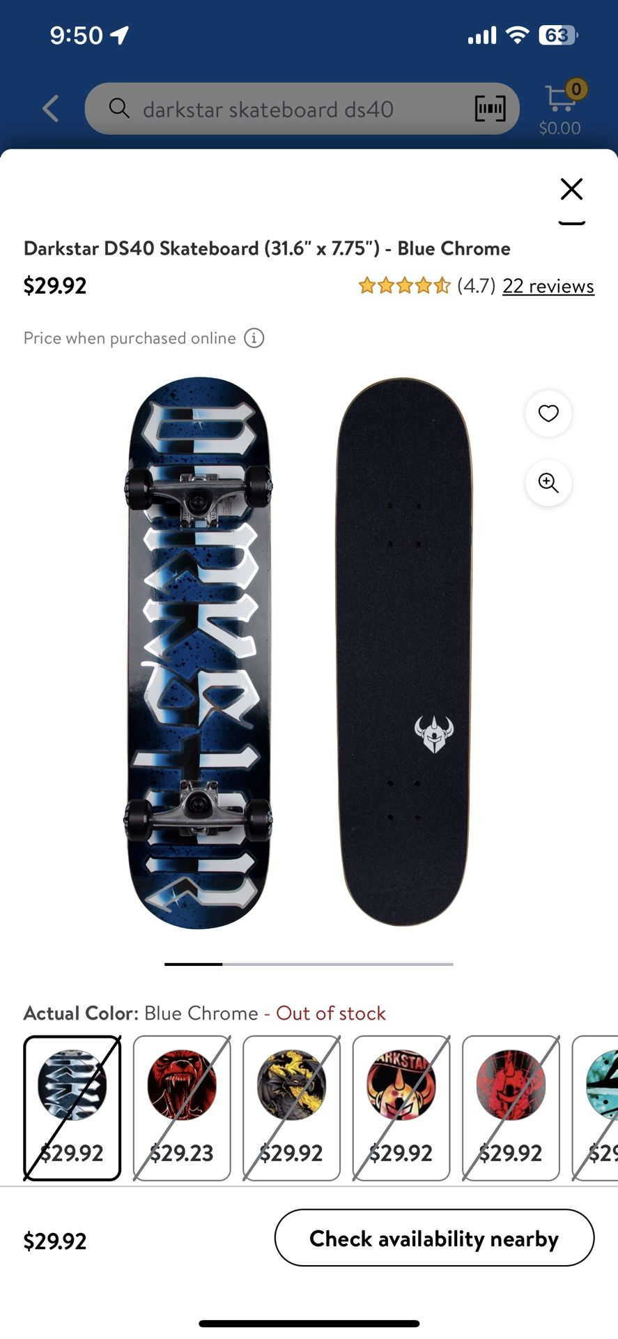 NEW ! Darkstar DS40 Skateboard (31.6" x 7.75") - Blue Chrome