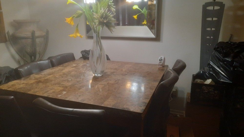 Large Marble dining room table with 6 used chair's.