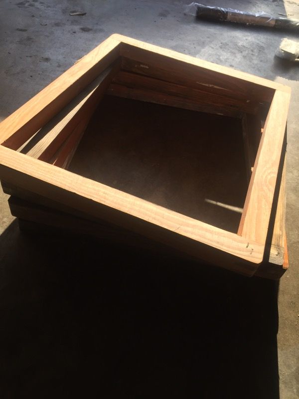 Various Wood silkscreen frames good condition just need to be remeshed can probably find some tutorials on YouTube $7 each obo
