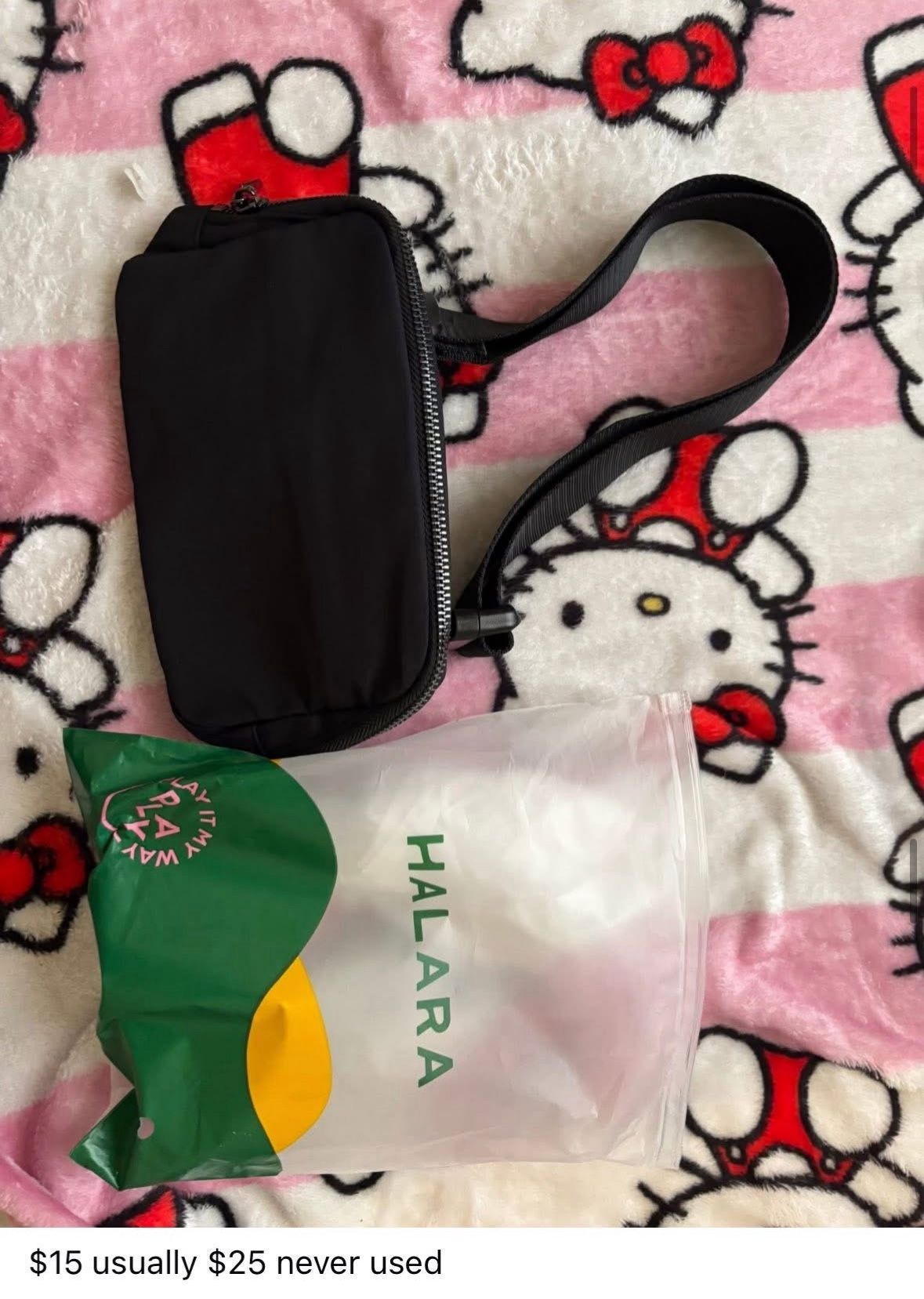 $15 Halara Fanny Pack $5 hello kitty car Hello kitty backpack $8 $20 blue purse