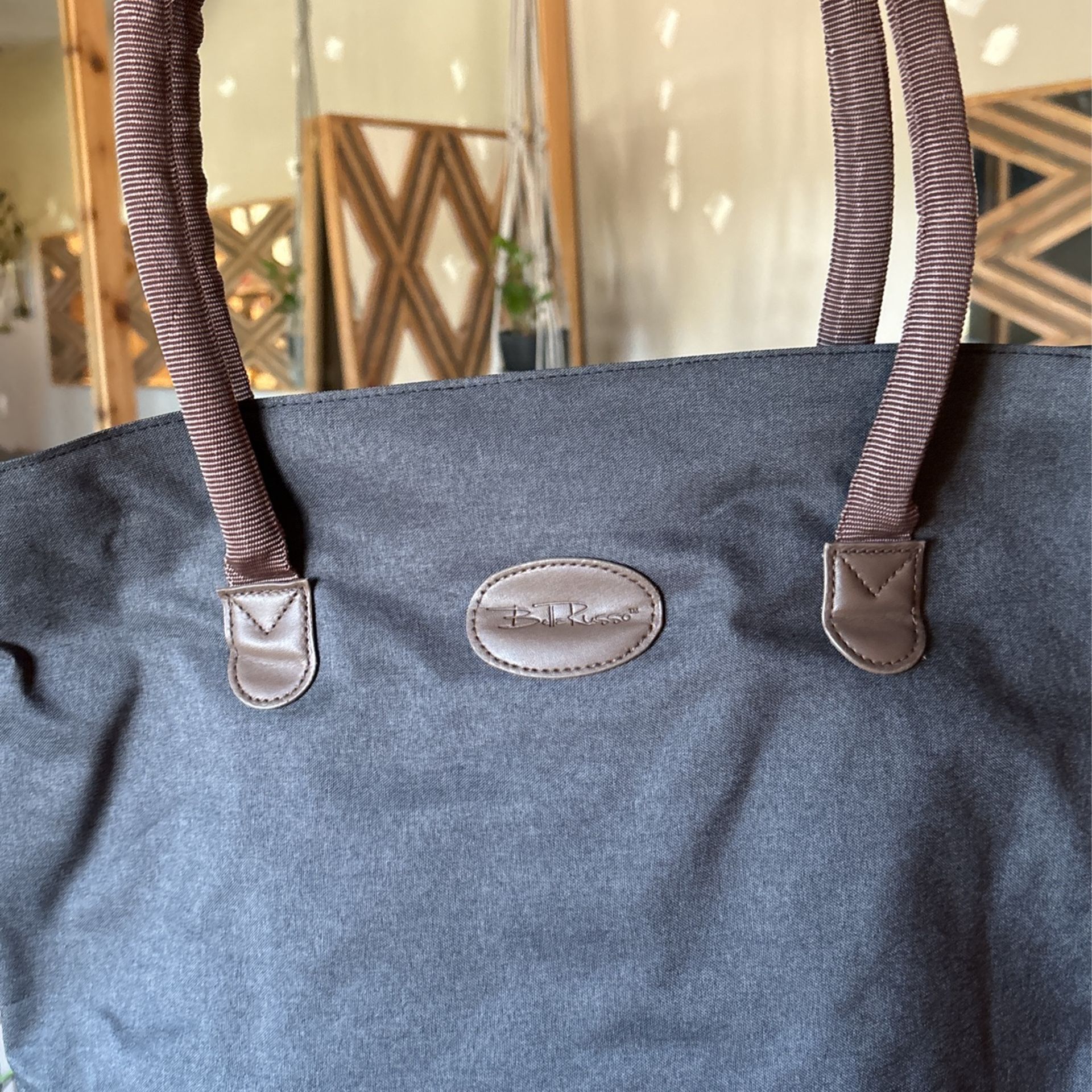 New in bag Black canvas with brown nylon shoulder Travel bag w/ detached toiletry bag 18Lx13Hx6D handle 10” Toiletry bag 13x7x4 Wipe clean nylon lining/ Zipper closures