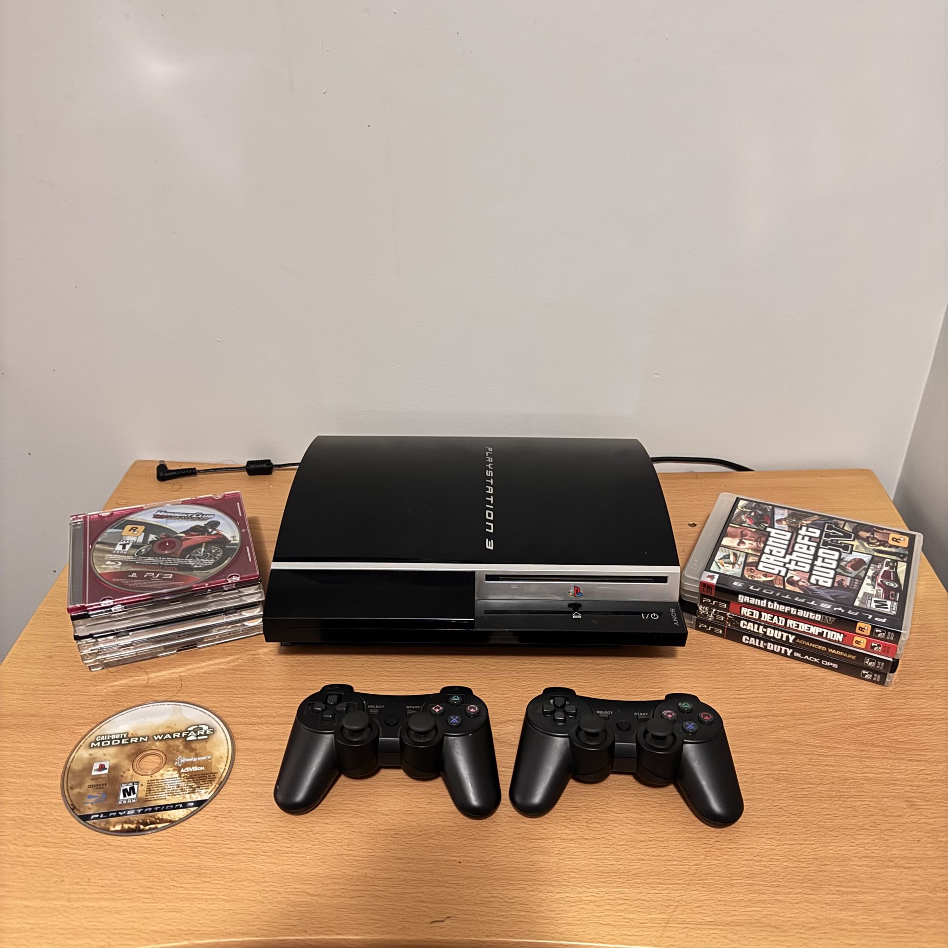 Fully tested Sony PlayStation 3 console bundle (Model CECHL01) in good working condition. Console powers on, reads discs, and controllers connect and work properly. Includes: • Sony PlayStation 3 console (Model CECHL01) • 2 wireless controllers • Power cable • 14 PlayStation 3 games Games included: • Grand Theft Auto IV • Red Dead Redemption • Call of Duty: Advanced Warfare • Call of Duty: Black Ops • Call of Duty: Modern Warfare 2 • Call of Duty: Ghosts • Battlefield: Bad Company 2 • Fallout 3 • God of War III • Darksiders • Resistance: Fall of Man • Resistance 2 • Skate • Midnight Club: Los Angeles Some games include original cases while others are disc-only as shown in photos. Console shows normal cosmetic wear but works properly. Pickup available in East Boston, MA 02128 or delivery available locally. Accepted payments: Cash, Zelle, Venmo, PayPal.