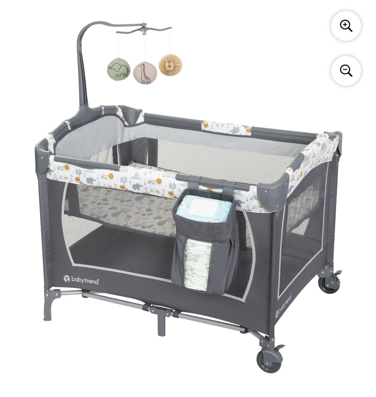 Baby Trend Nursery Center Playard with Animal Toys, Grey - NEW