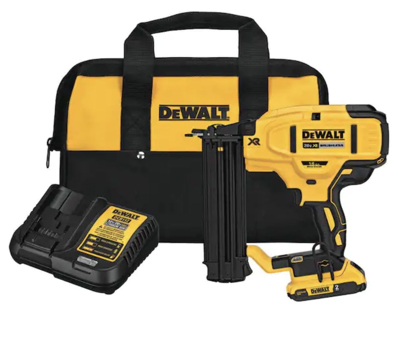 Brand new in a box DEWALT 20V MAX XR Lithium-Ion 2-1/8 in. 18-Gauge Electric Cordless Brad Nailer Kit w/ 2.0Ah Battery, Charger and Contractor Bag. Non-negotiable! $300 for the kit Dewalt nailer, Dewalt 18g nailer, Dewalt Brad nailer.