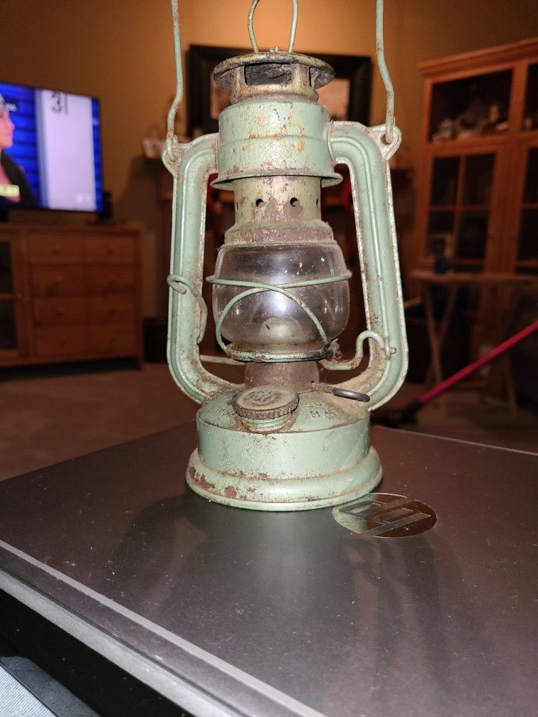 ANTIQUE FEUERHAND BABY 175 LANTERN . 8 INCHES TALL WITH HANDLE DOWN 12 INCHES WITH IT UP. MADE IN WEST GERMANY. PRETTY OLD. $50.00 OBO