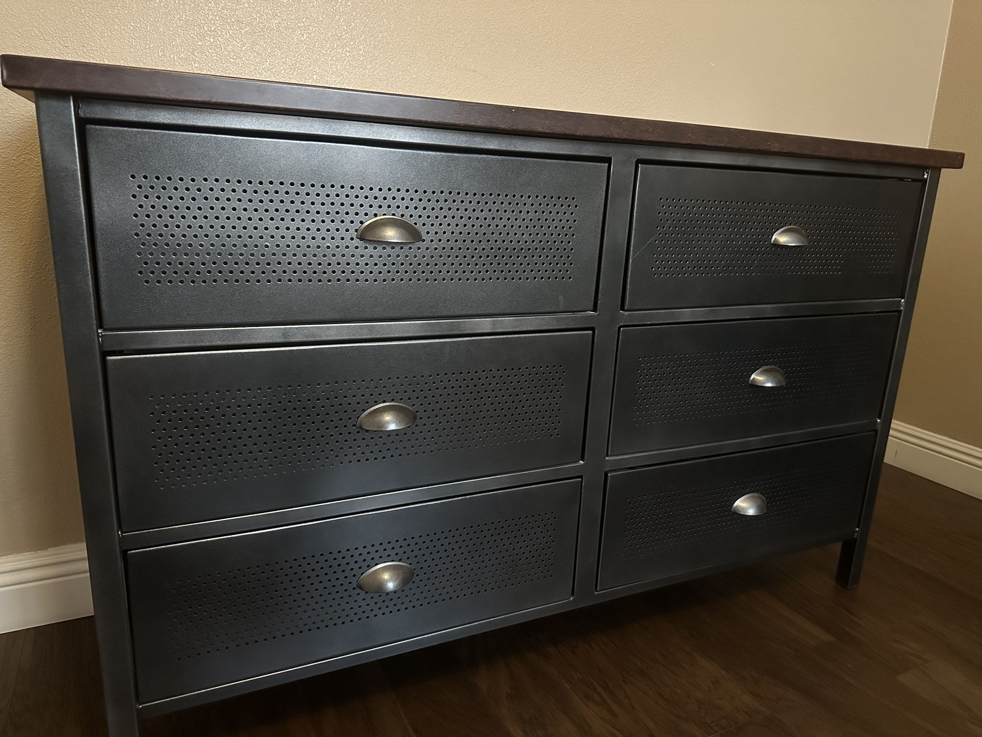 Elysia 6 drawers double dresser by Charlton Home ( gray and Brown ) Model W011159165 H 33.25” x L 54” x W 18” Item kept inside home, not in storage or garage