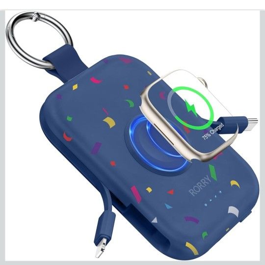 RORRY Portable Charger, 5000mAh Portable Charger Power Bank with Built-in Cables, Travel Keychain Battery Pack for Apple Watch Ultra/11/10/9/8/7/6/SE, iPhone Air/17/16/15/14/13/12, Confetti-Deepblue Brand New in Box 💫 Nuevos My price is firm Cash or Zelle Only No Delivery