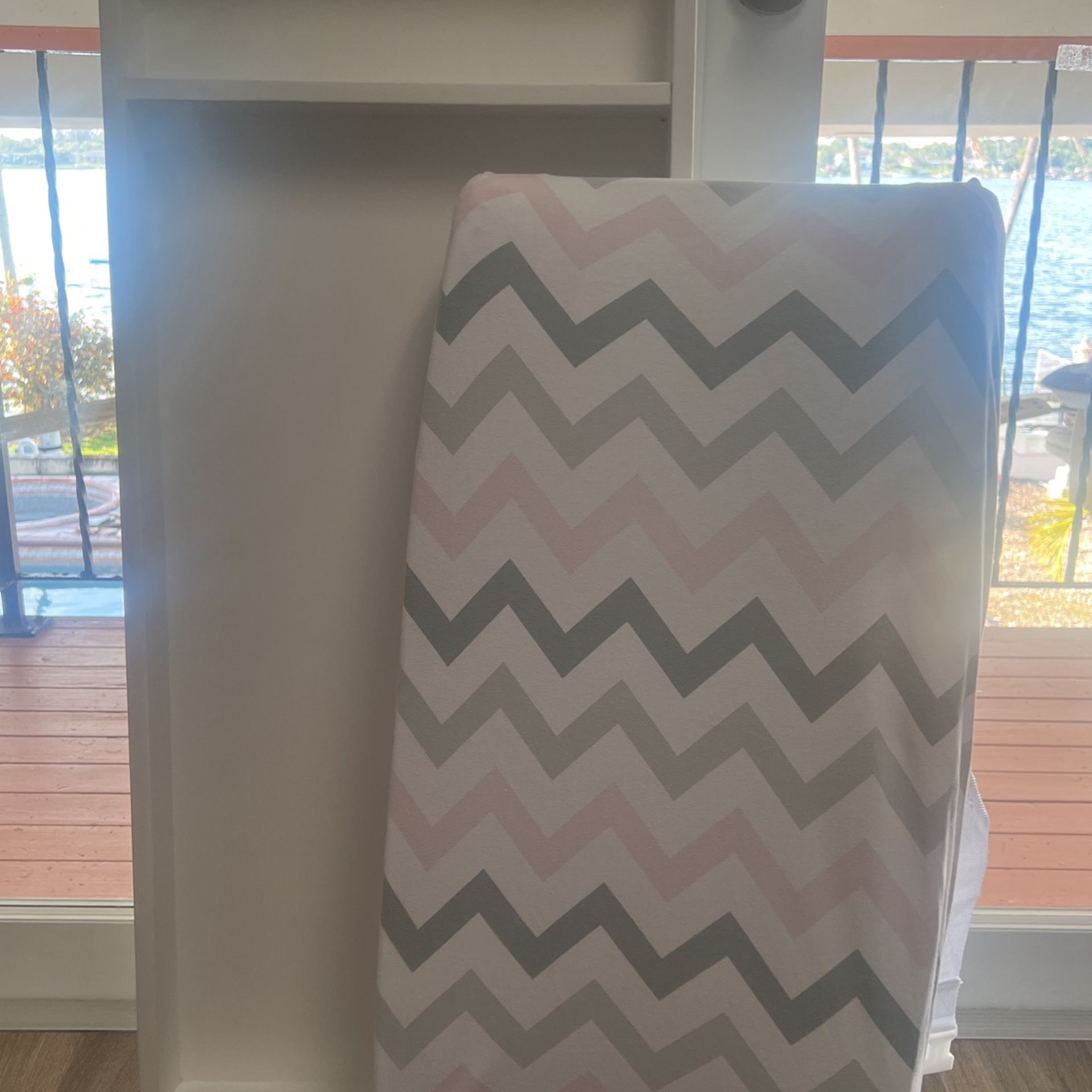 Excellent condition Pottery Barn wood changing table topper. Color is Simply white. Like new condition Munchkin changing mat and cover included! 3 pieces total!
