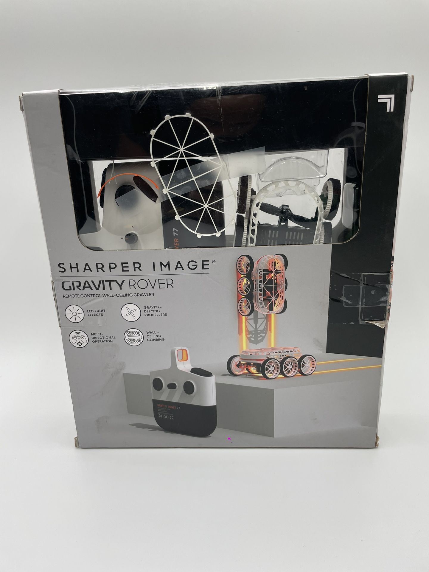 Sharper Image Gravity Rover - Remote Control Wall & Ceiling Crawler with LED Lights - New in Box
