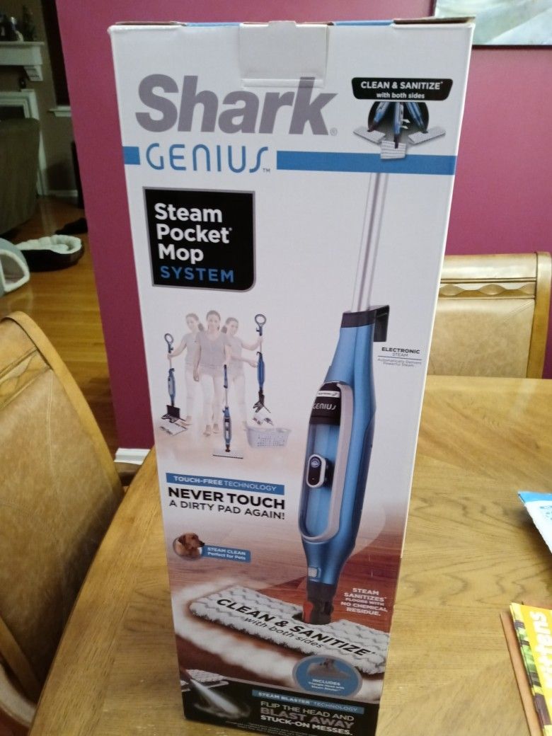 THIS IS THE ORIGINAL SHARK GENIUS STEAM MOP BRAND NEW IN SEALED BOX NEVER TOUCH A DIRTY PAD AGAIN STEAM CLEAN PERFECT FOR HARDWOOD FLOORS AND PETS FLIP THE HEAD AND BLAST AWAY STUCK ON MESSES STEAM AND SANATIZE WITH NO CHEMICALS THIS IS TOUCH FREE AGAIN BRAND NEW IN SEALED SHARK GENIUS STEAM MOP THIS SELLS IN STORE FOR 119.99 PLUS TAX OUR PRICE 60.00 HALF PRICE GREAT DEAL GREAT PRICE CHECK THIS ONE OUT FOR YOURSELF MUST SEE