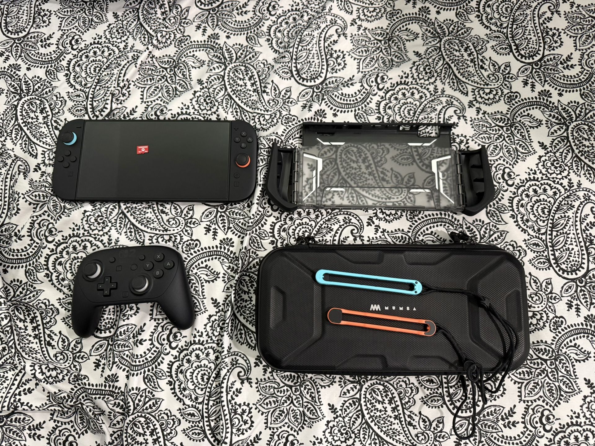 Barely used switch 2 with screen protector, 256 gb sd card, pro controller, and carrying case. Original box + all accessories originally included with the switch.