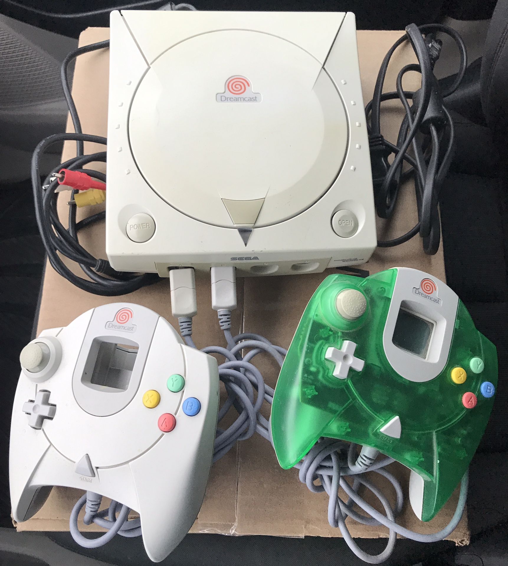 Sega Dreamcast Two Controllers Visual Memory Unit Power Chord A/V Cable Tomb Raider - The Last Revelation game disk all original parts tested. working will consider trade for NES, SNES, N64 or gamecube games