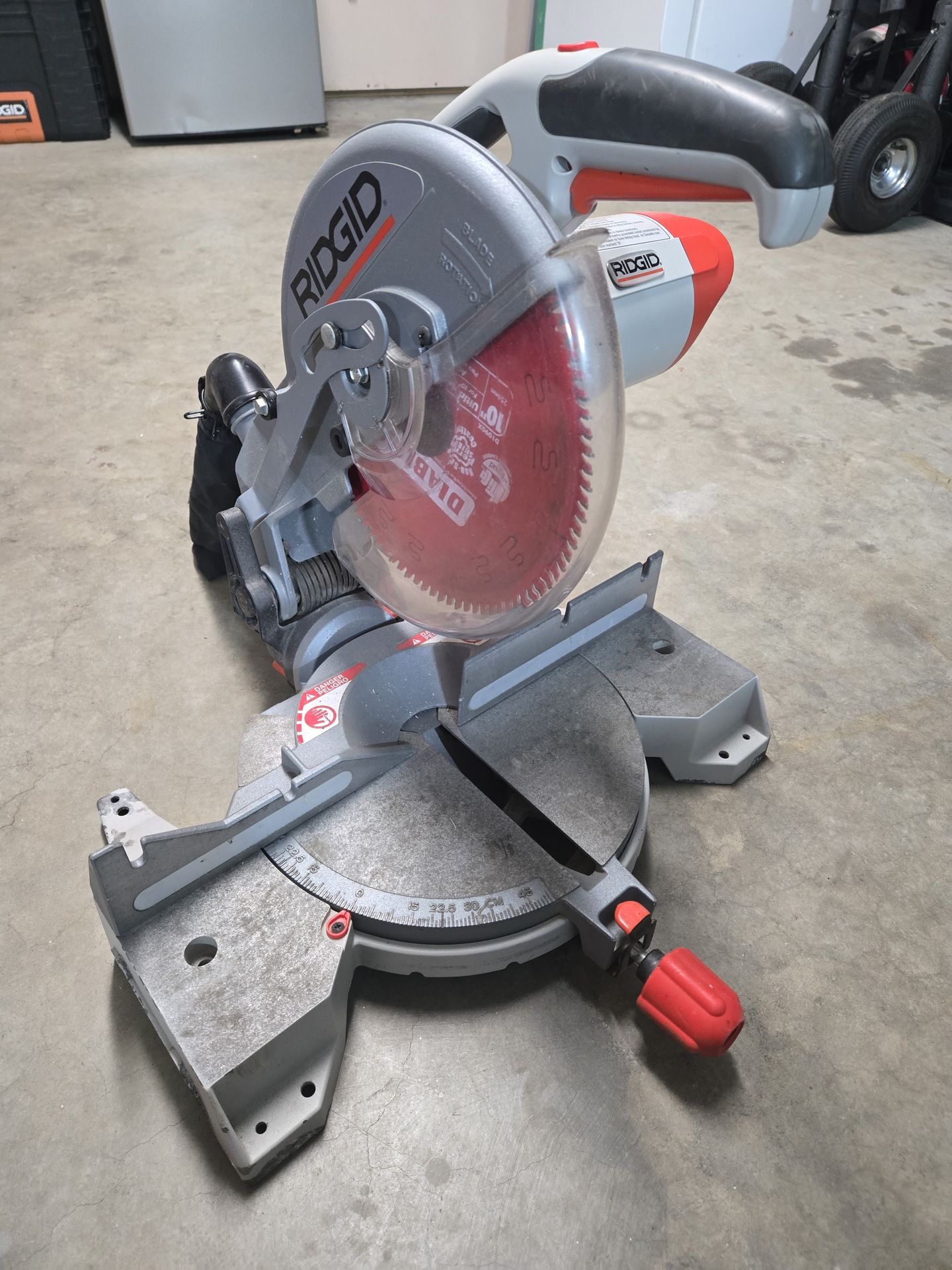 Ridgid MS10501 is a 10-inch compound miter saw designed for precision wood cutting, featuring a 15-amp motor and a dual bevel design, which allows for angled cuts on both sides. Includes a dust bag. Key Features and Details: Model: MS10501 (10-inch Compound Miter Saw) Power: 15 Amp motor Type: Dual Bevel Compound
