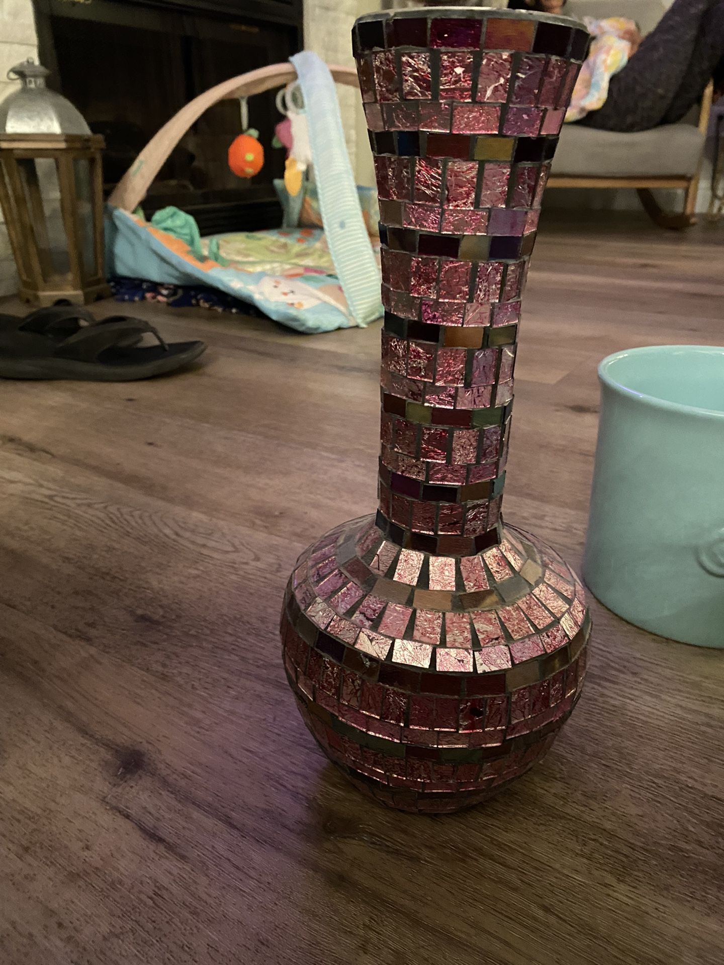 Pink iridescent mosaic vase