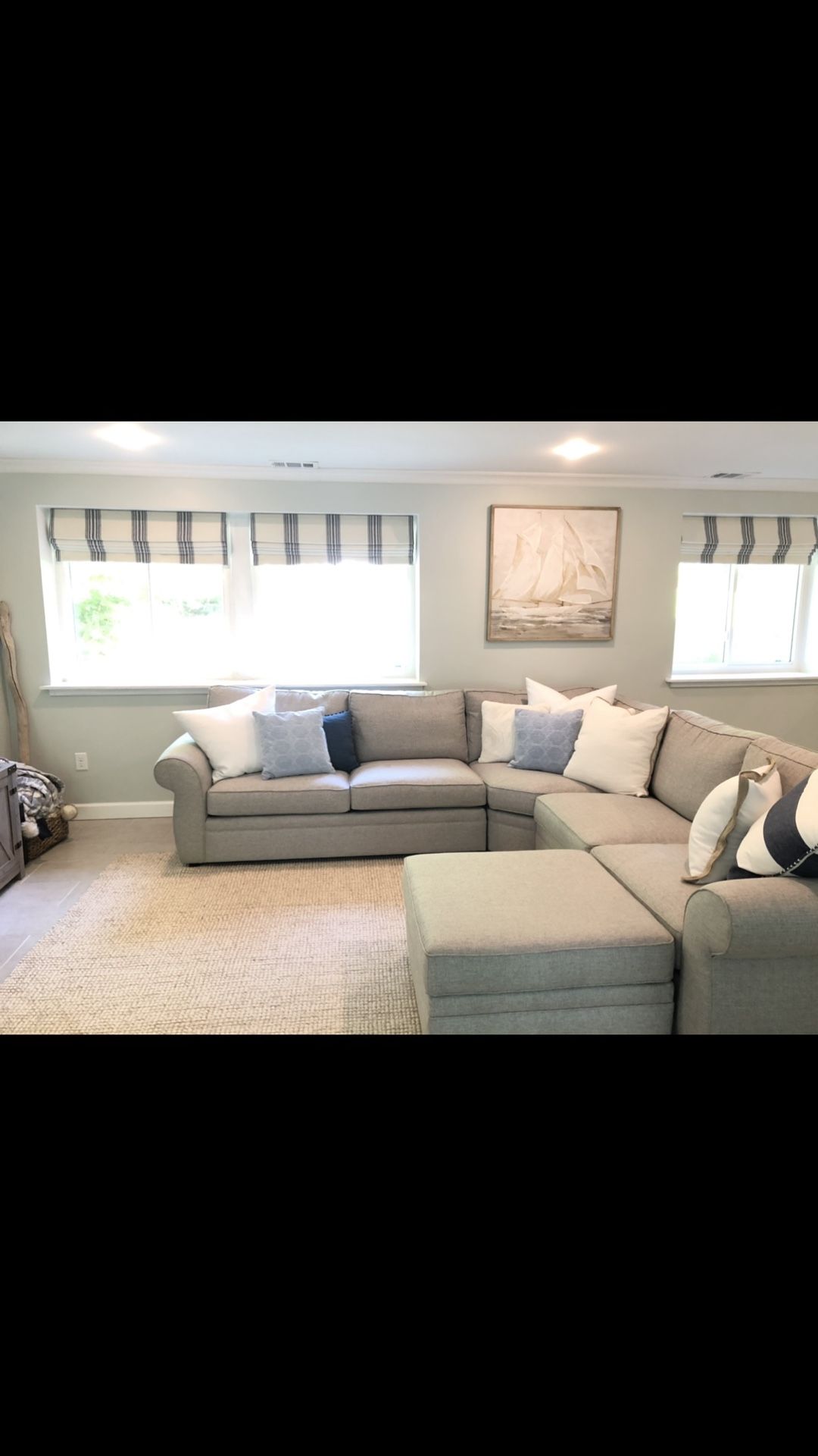 Retails $6,900. Pottery Barn Pearce sectional in nearly brand new condition. Was only used occasionally over the years we owned it. Very comfortable and seats a lot of people. Perfect neutral and durable fabric for various design looks. Sad to part ways with it but we moved and it no longer fits! Dimensions are 10ft x 10ft. Ottoman included. Roll arm. Removable legs are square tapered and finished in an Espresso finish. Seat cushions are loose. Hardwood frame with mortice-and-tenon joinery provides exceptional structural integrity. No-sag steel sinuous springs provide cushion support. Hidden steel connectors hold modular pieces securely together. Adjustable levellers provide stability on uneven floors. This sectional is made up of: 1 Left-Arm Loveseat, 1 Wedge and 1 Right-Arm Loveseat. Down-blend-wrapped cushions for a softer feel. Back cushions are 100% polyester fill. Width: 121.5 inches, Height: 38 inches, Depth: 40 inches