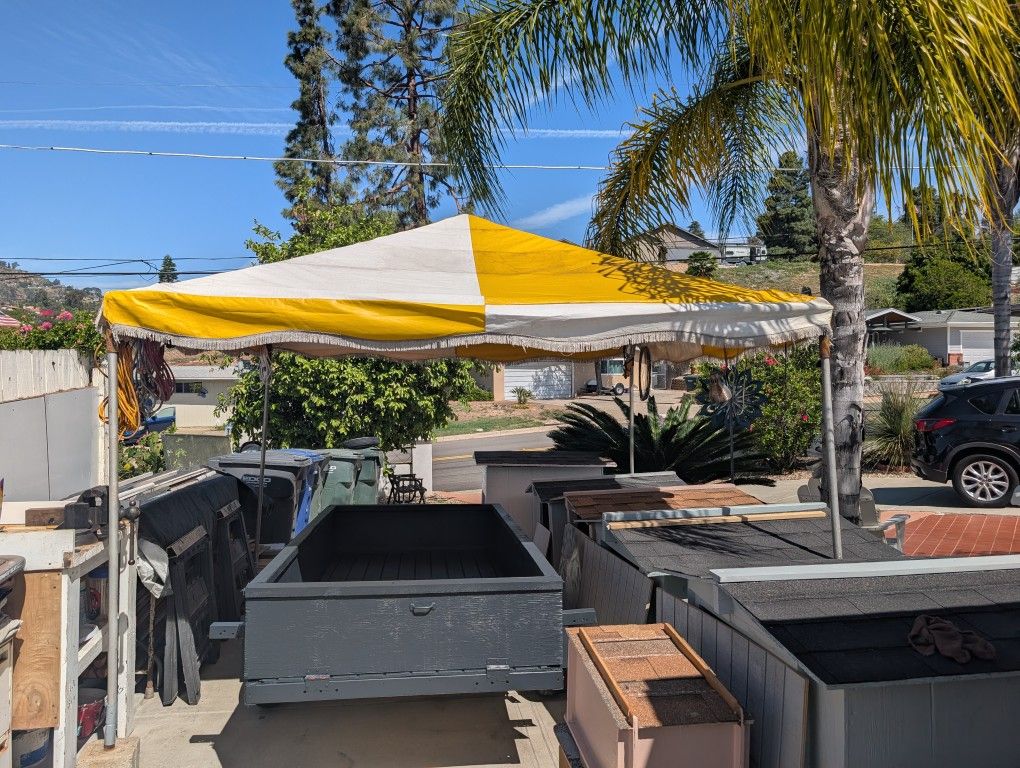 10x10 patio commercial cover almost in new if you need the piping all together. $160 will last you for long time. I have another one blue and white 20 ft. That one by itself is 200
