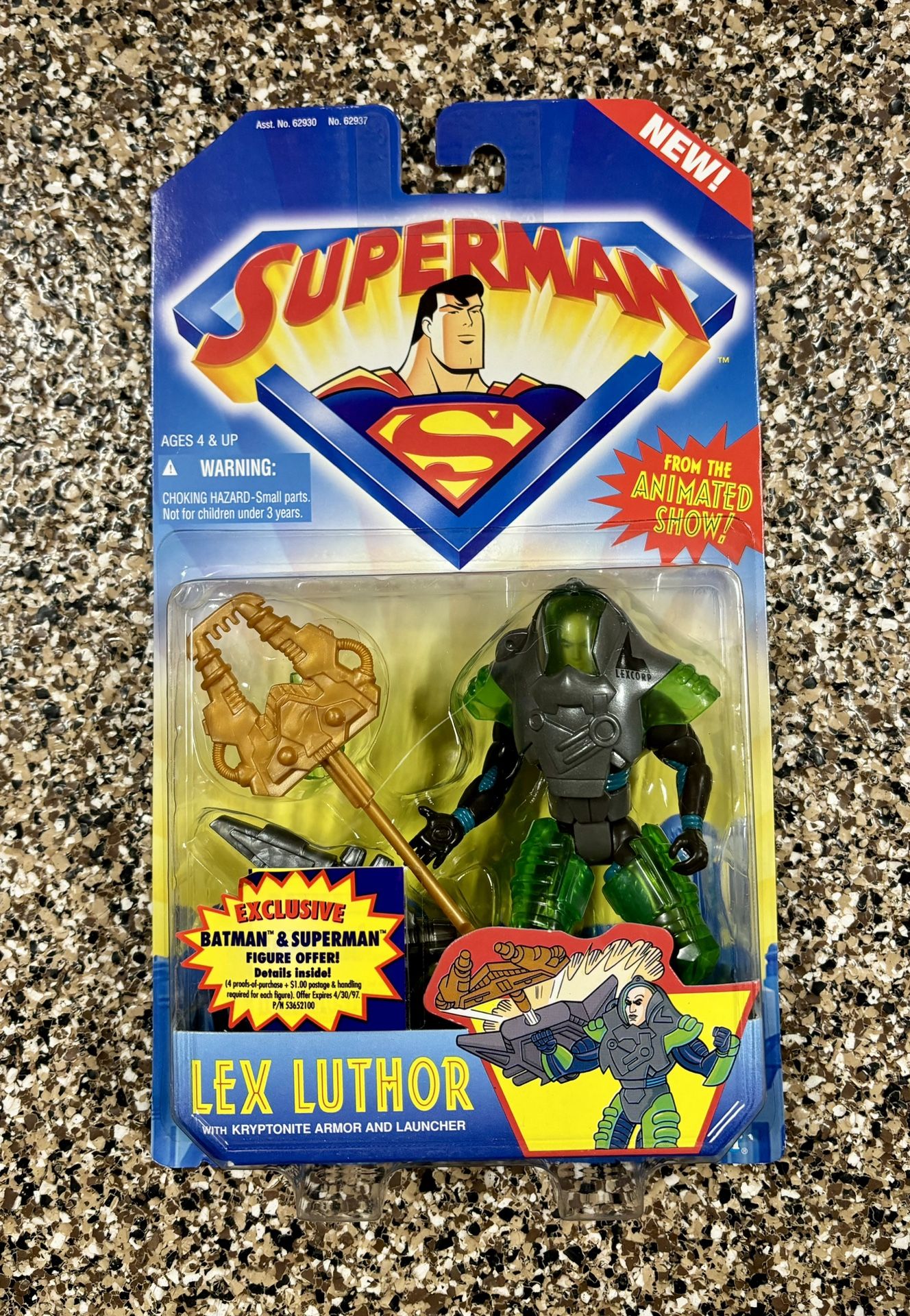 Lex Luthor with kryptonite armor and launcher. Kenner 1995.