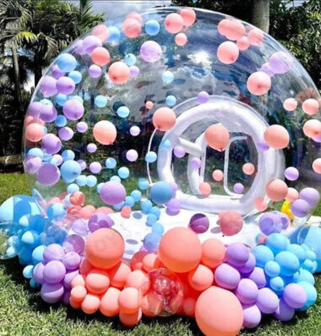 13 ft bubble dome balloon house available. It is much larger than similar products in the area and comes with over 100 balloons of chosen color(s) for the inside. Can also opt to have neon balloons and black lights for a night event.