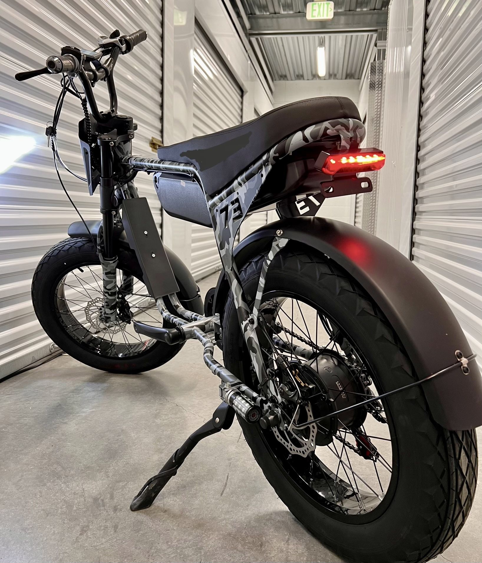 ✅✅✅✅✅✅✅✅✅✅✅✅✅✅✅✅ ⚡️⚡️BRAND NEW - 1 YEAR WARRANTY ⚡️⚡️ ✅✅✅✅✅✅✅✅✅✅✅✅✅✅✅✅ Price includes: Tax, Free Delivery, Full Ebike Build with brake and derailleur tuning, 1 year warranty, Free test ride before purchase 73 Miamii Style Electric Ebike 750 Watt Motor 13ah Battery 28mph top speed Rear Pegs 24 inch long seat 31 inches high from ground to top of seat height (4’10-6’0 Rider Height) Bike is very light at 65lbs with battery Removable Battery Disc Brakes Twist Grip Throttle 5 Speed Pedal assist 7 Speed Derailleur Shimano Camo or Dark Gray (Colors available)