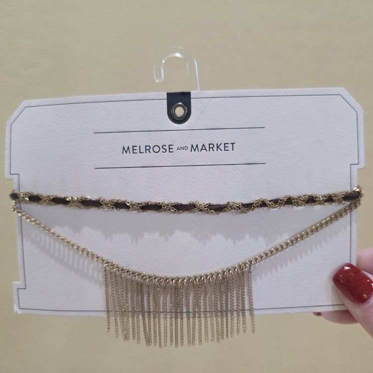 π―π PLEASE READ ALL β¬οΈ If it is posted, it is available. Pick up only. 152nd Ave and Camelback in Goodyear New! Nordstrom Rack Melrose and Market Two-Strand Tribal Boho Chic Choker Necklace Gold chain and brown suede. Don't forget to check out my other items!