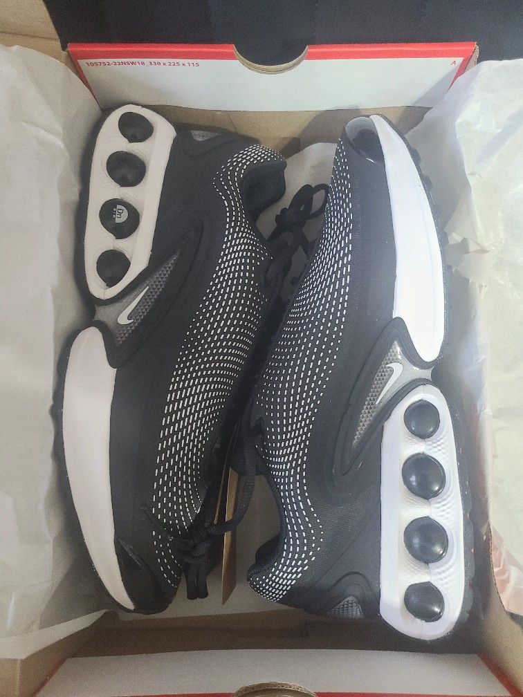 These Nike Air Max Dn shoes are black and white. They come in original packaging. Men's size 10