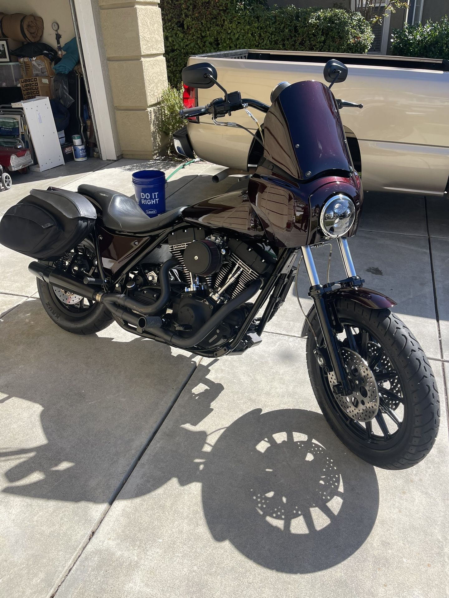 1990 FXRP Twin cam original T sport faring Black cherry paint job West coast t bars Moons headlight Leather pro bags 13 spoke mags Mikuni carb Led smoked tail light Arlen ness air intake Thunderheader exhaust Clean FXRP built motor ready to ride bike was just serviced new front rotors and pads oil change full tune up asking 14.5k also have a original set of clam shells for it paint matched