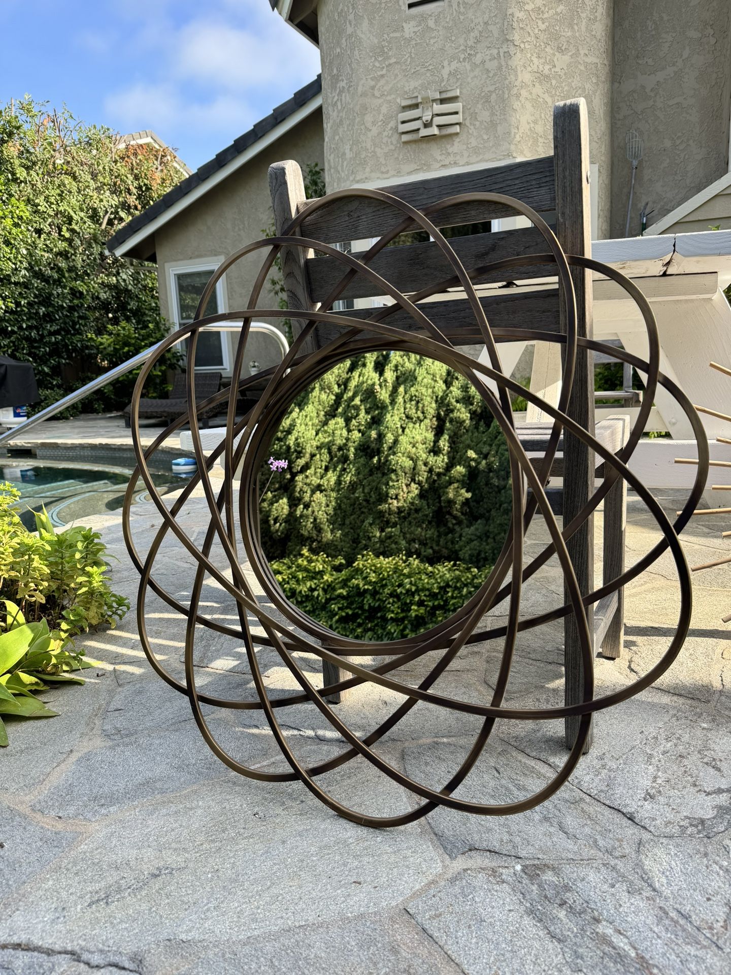 Beautiful, unique metal swirling galaxy mirror that brings a special pop to any walk. This mirror is in brand new condition.