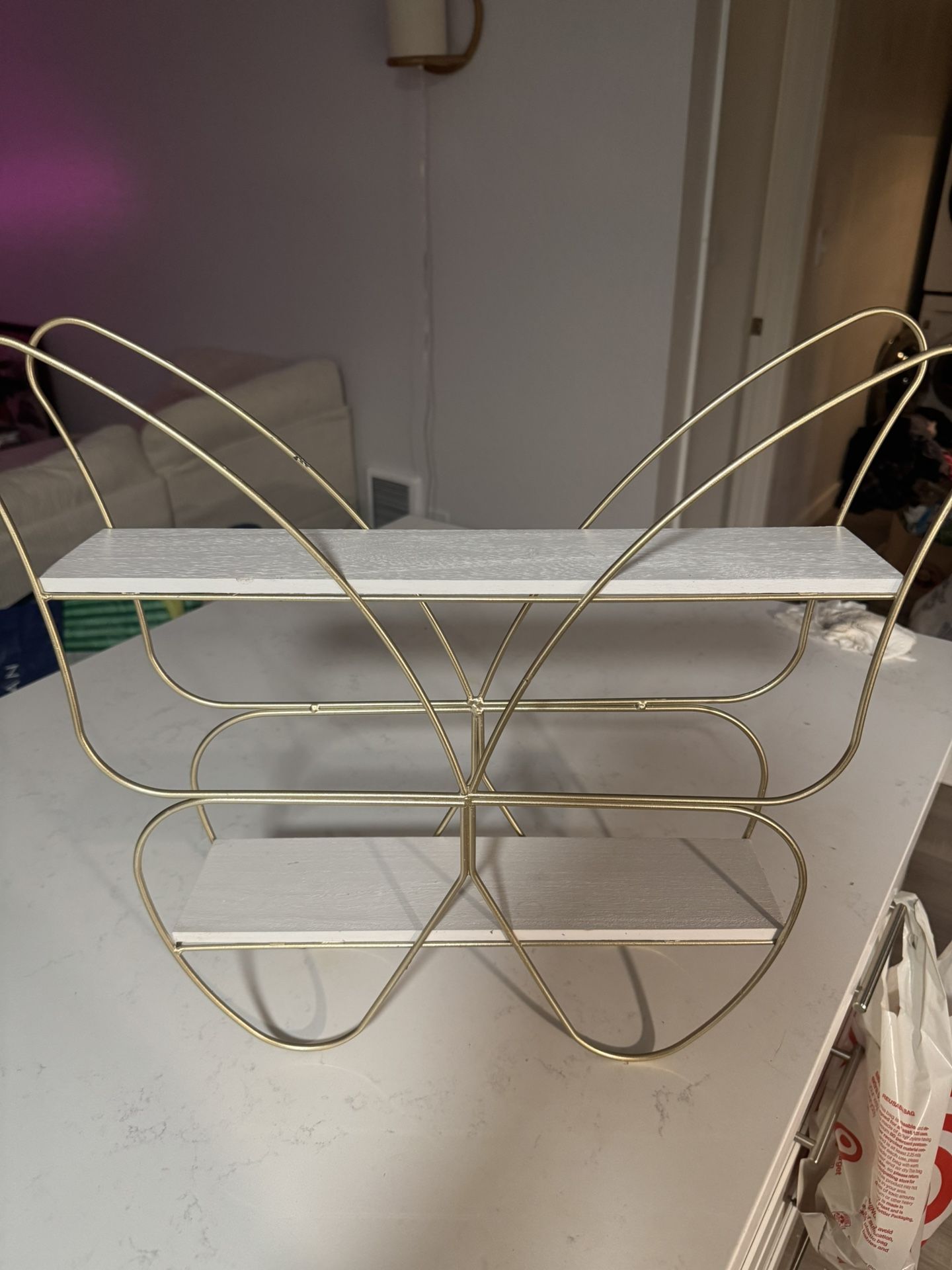 Butterfly shelf from home goods. Can be used as a perfume rack or makeup display.