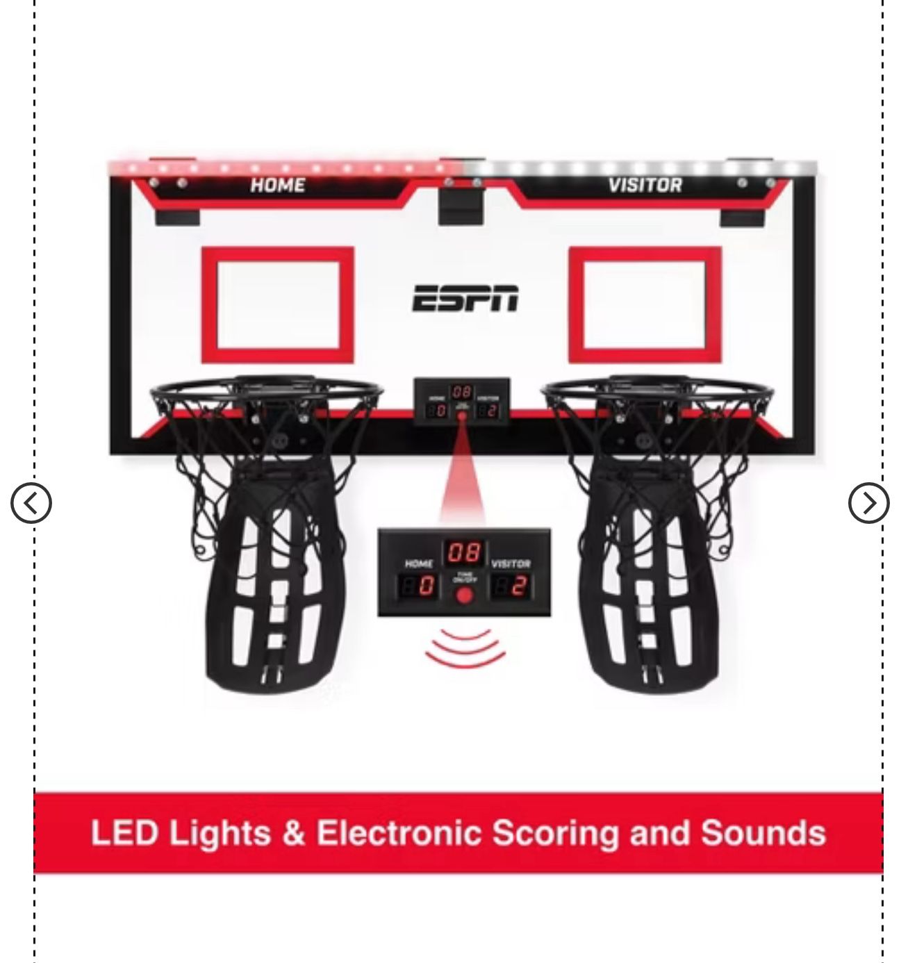 ESPN Mini Basketball Hoop, Over The Door Basketball Hoop for Two Player Games Includes 4 Mini Basketballs and Pump New in box