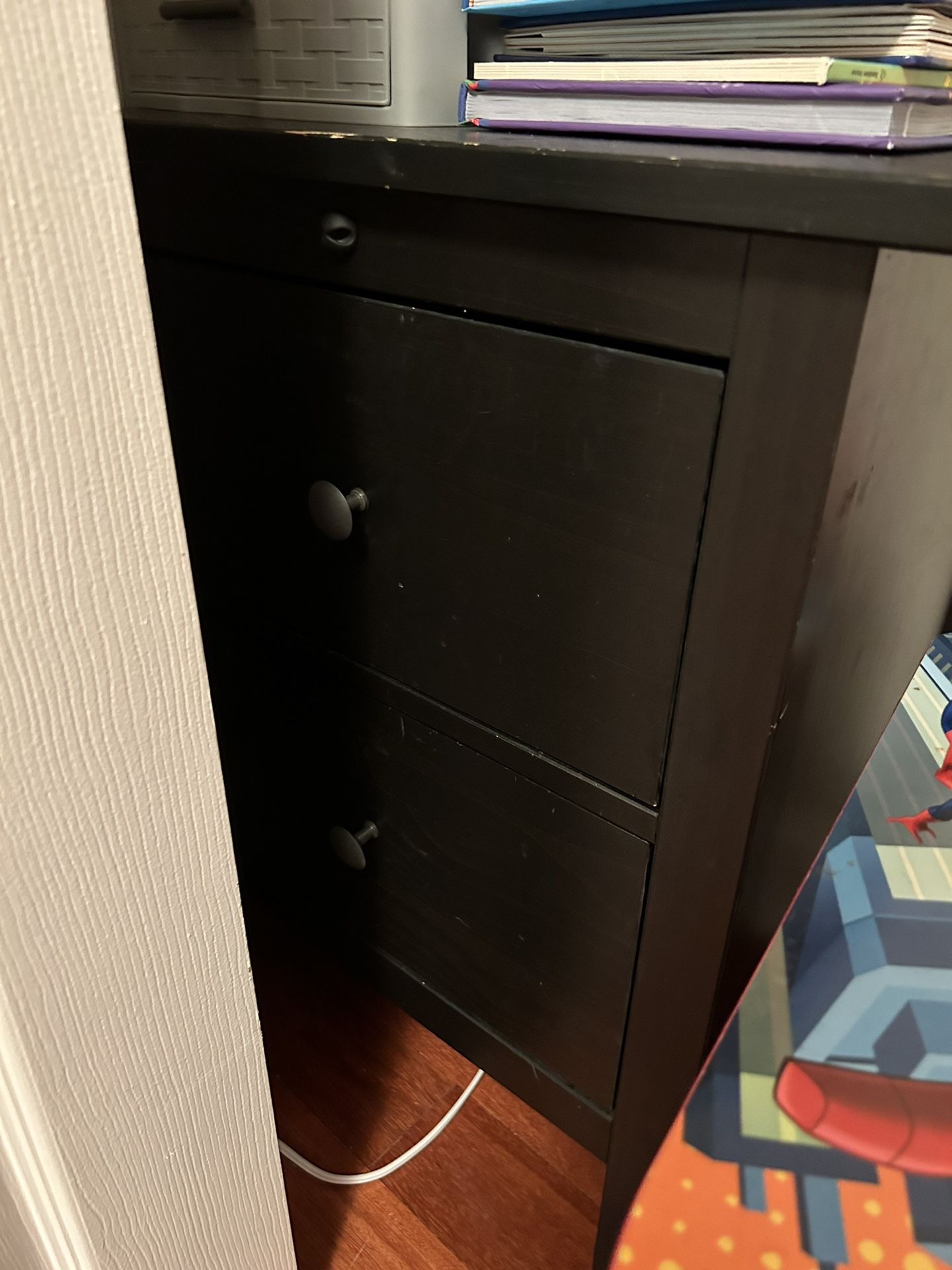 Small end table/drawer set with two drawers Using it as a bookshelf Black Used but good condition