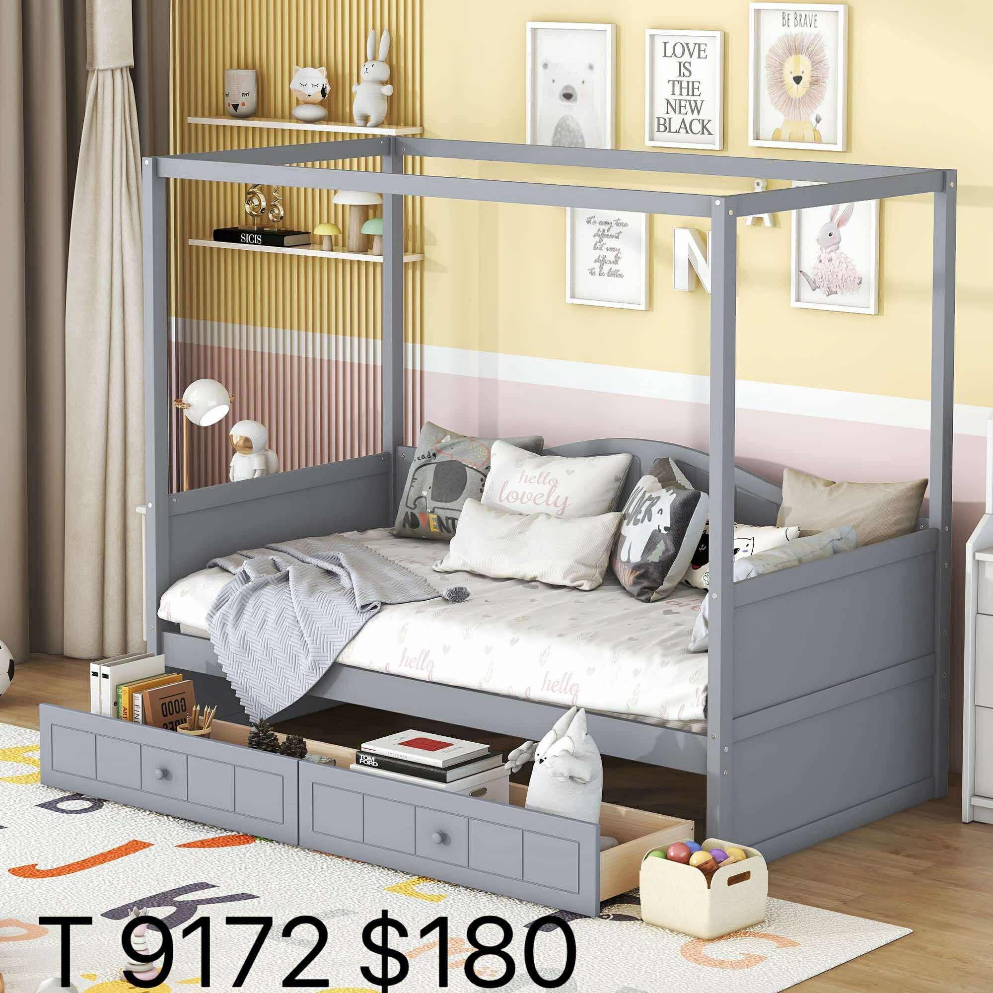 Twin Size Canopy Day Bed With 2 Drawers(9172)