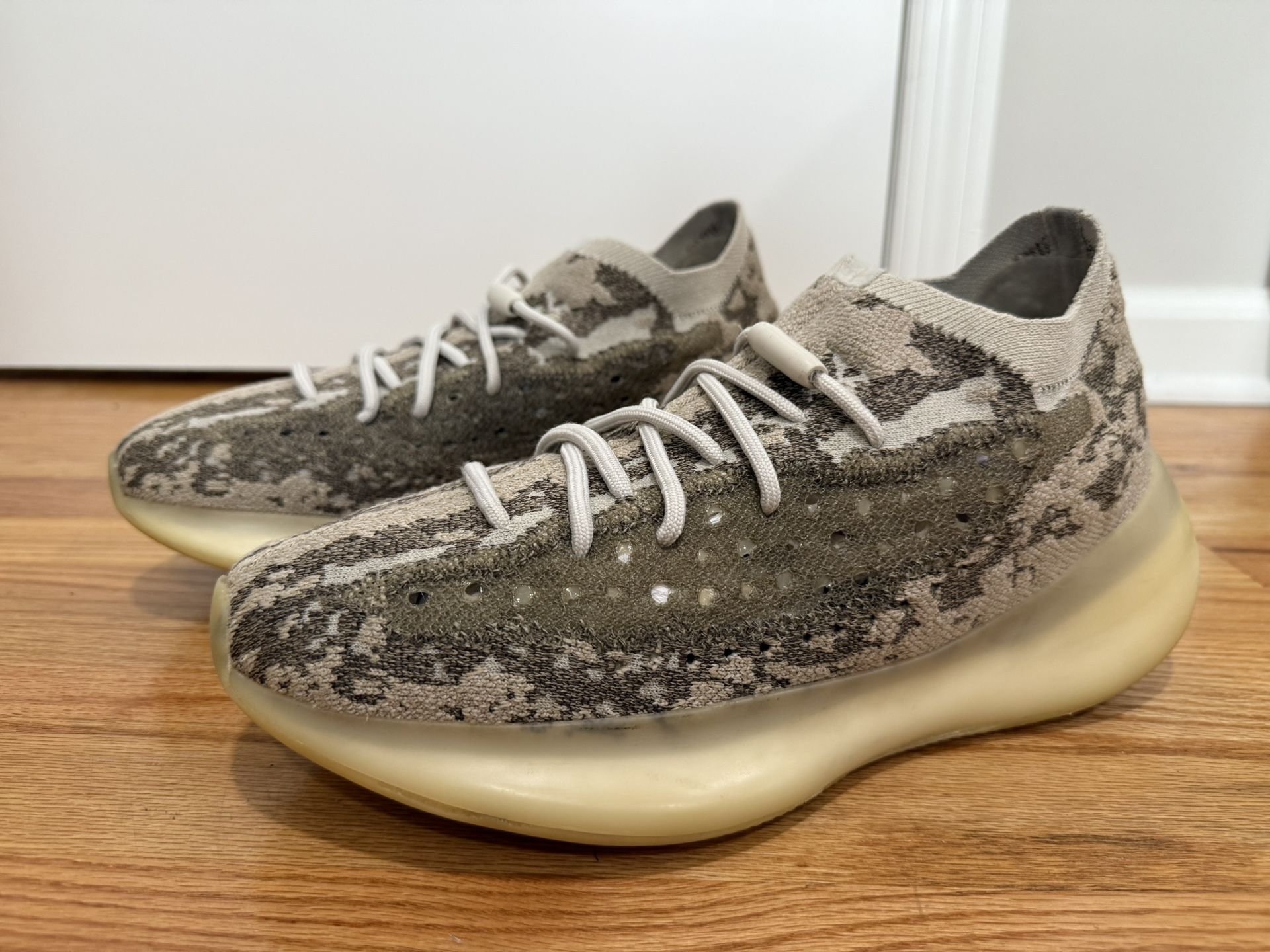 Yeezy are used in ok condition still, uppers still look good with normal signs of wear, no rips tears or stains. Bottoms have some wear and heel drag, in there condition i would rate them a 7.5/10