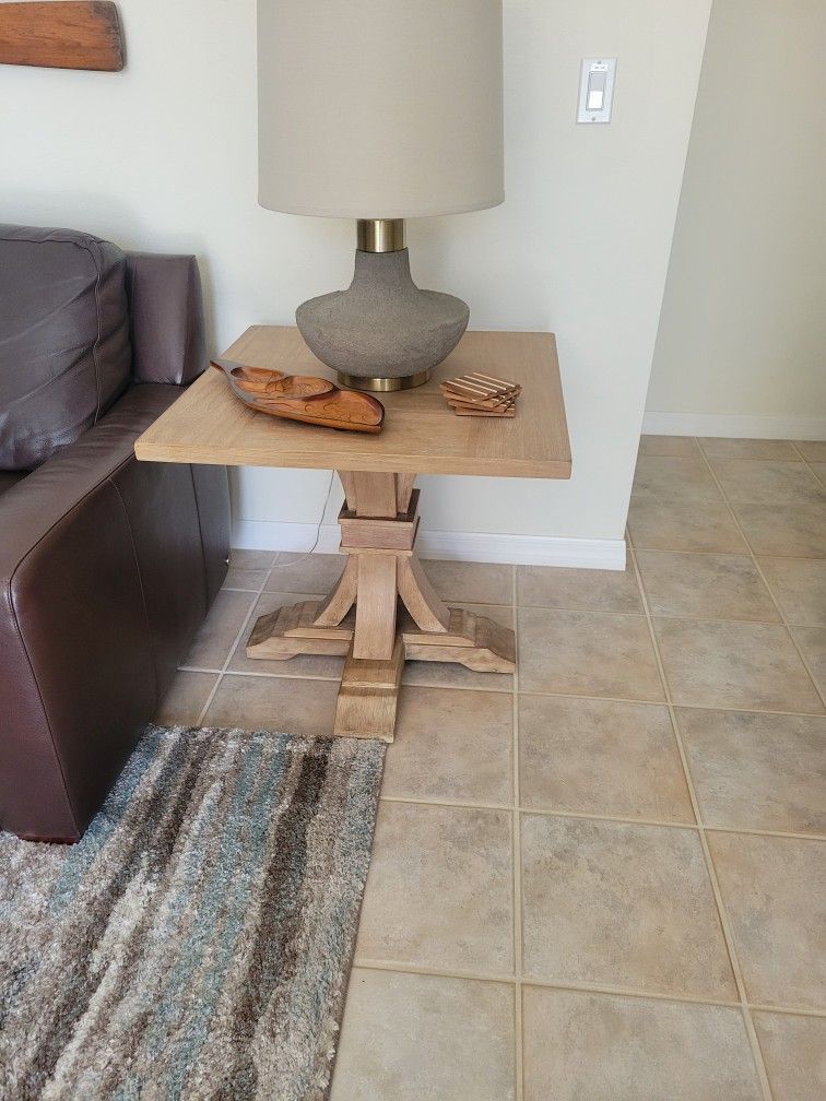 Square end table with stonewash finish from Traditions Collections. Measures 27" x 27" wide x 25 1/2" tall. Used but in very good condition. From pet free smoke free home.