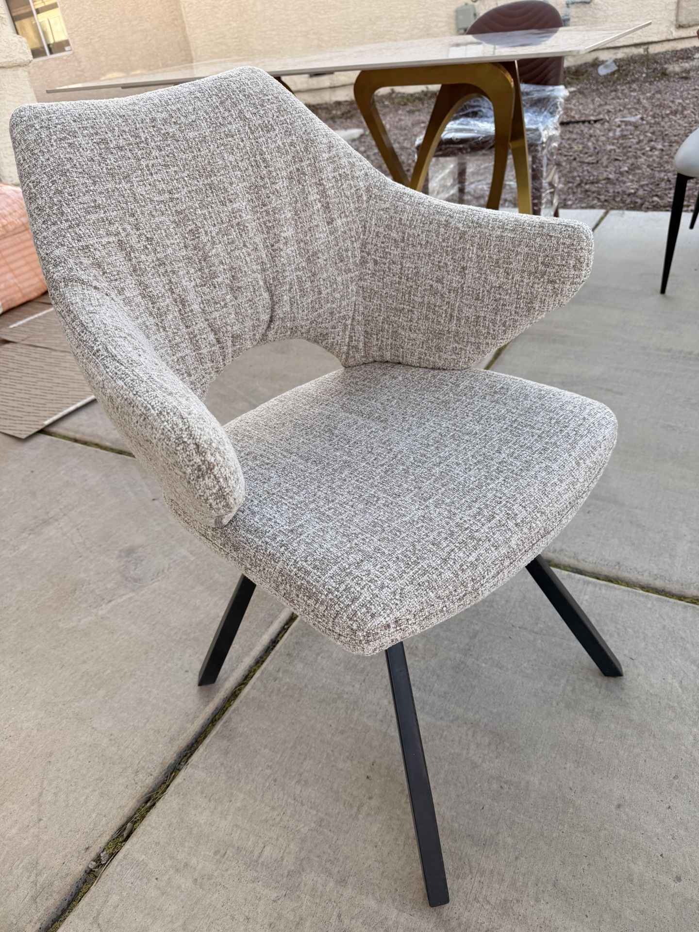 ✨ Brand new chair with stylish modern design ✨ Upholstered in soft, textured fabric (gray tweed look) ✨ Comfortable cushioned seat and back ✨ Sleek angled black metal legs ✨ Great for office, dining room, living room, or bedroom This contemporary accent chair is in new condition — never used. 📍 Local pickup or delivery fee