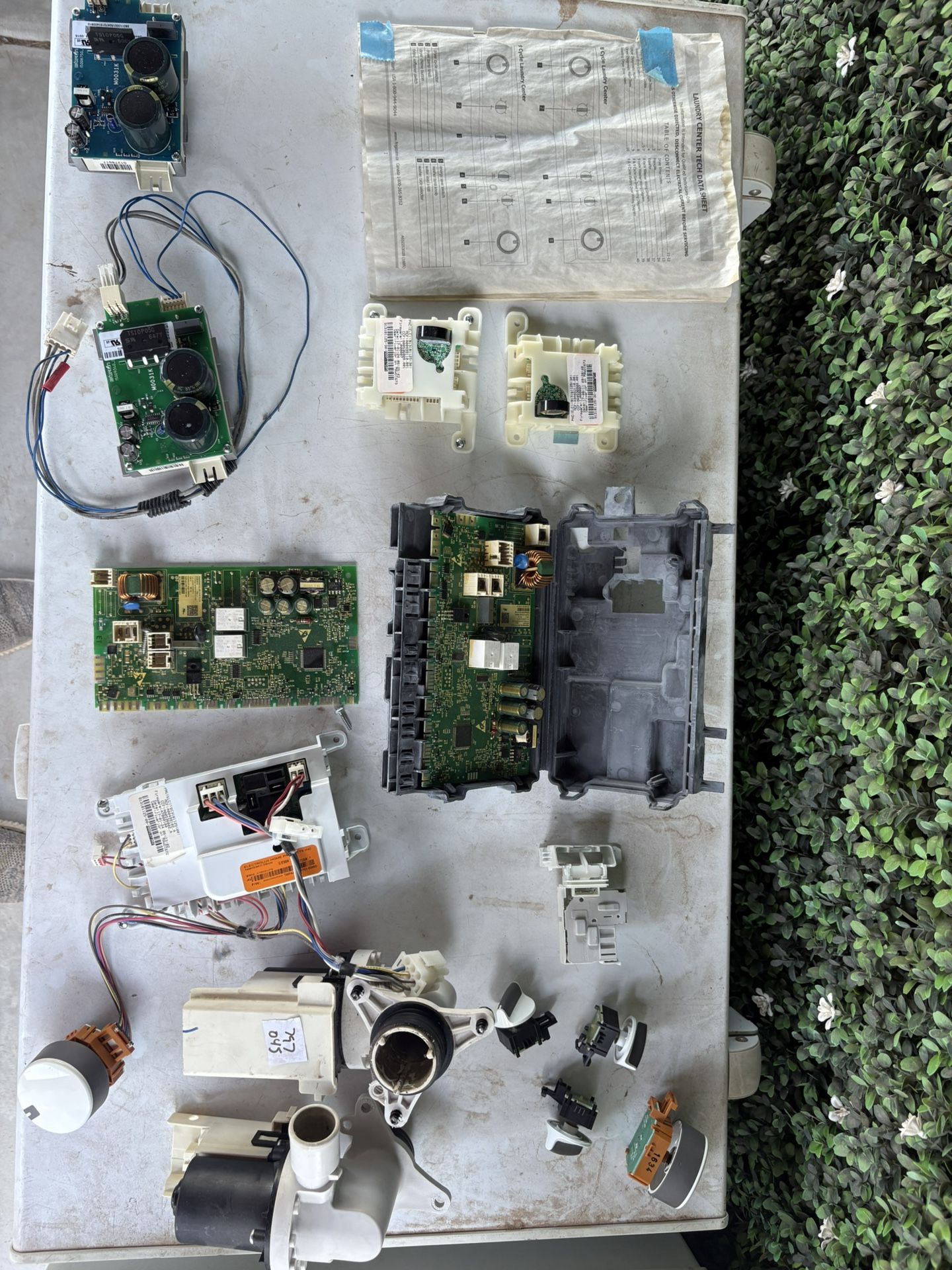 All the parts except for a motor for the Frigidaire FFLE3911Qw0 washer dryer stacker control boards, switches lid locks, drain pumps etc sold as the whole lot. Bout $1k worth of after market parts here