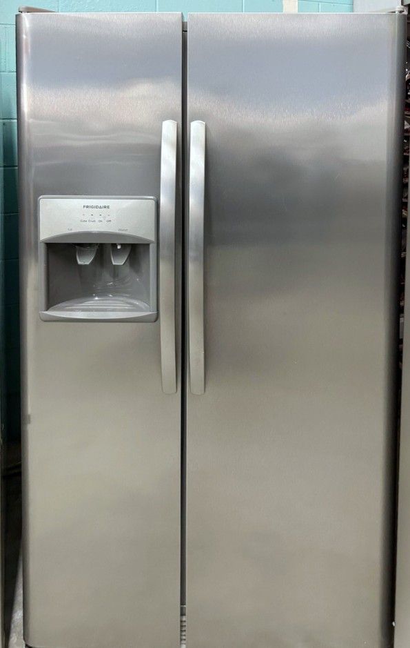 Selling a Frigidaire Side by Side Refrigerator in condition. Recently tested and ready for pickup or delivery. Warranty Included ✔ 25.5 cu ft capacity ✔ In-Door Ice & Water Dispenser ✔ H68⅞ x W36 x D31