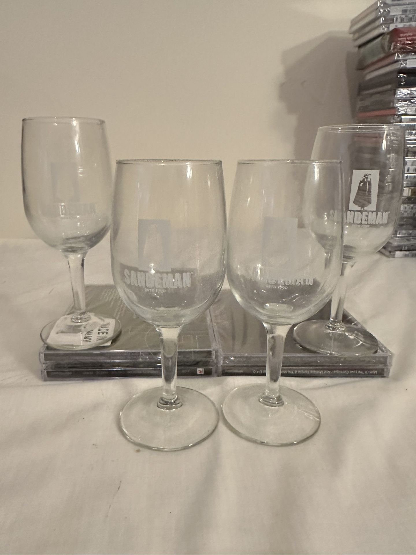 4 vintage Sandeman's Port, Port Sherry elegant glasses on foot, tumblers of Sandeman with Sandeman's logo, sanded on glass Never used brand new inbox All packaged and protected in box $25 for all 4