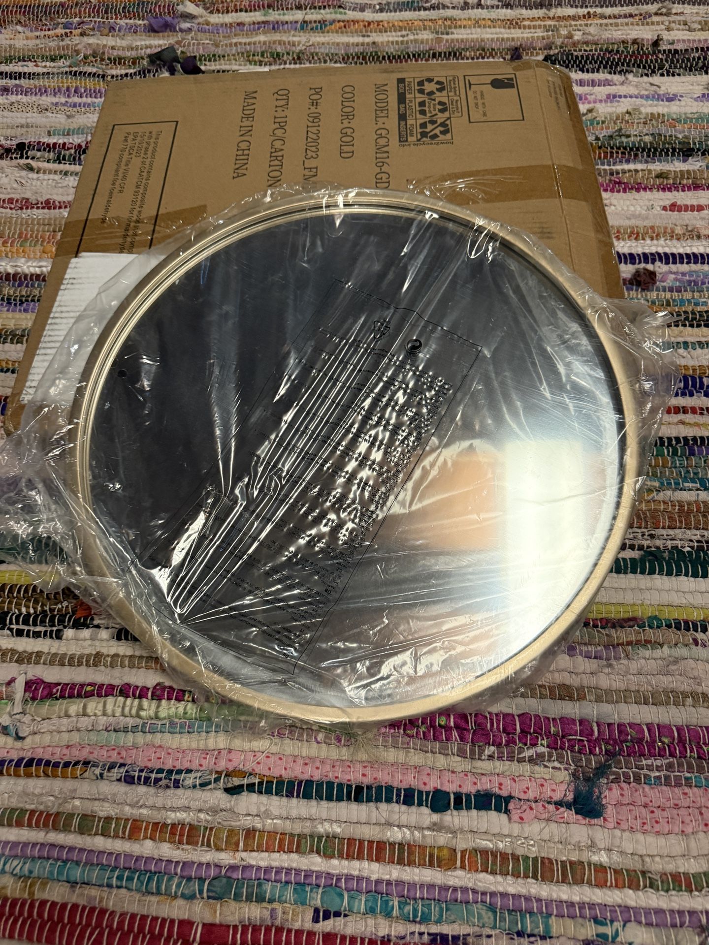 Brand New Frosted Gold 16” Circular Mirror Beautiful frosted gold round mirror — brand new, only removed from the packaging to take photos. Perfect for bedrooms, bathrooms, entryways, or as a modern décor accent. • Size: 16 inches • Finish: Frosted gold • Condition: New (never used) • Style: Modern / Minimalist Meet locally. No holds. Message me with any questions!