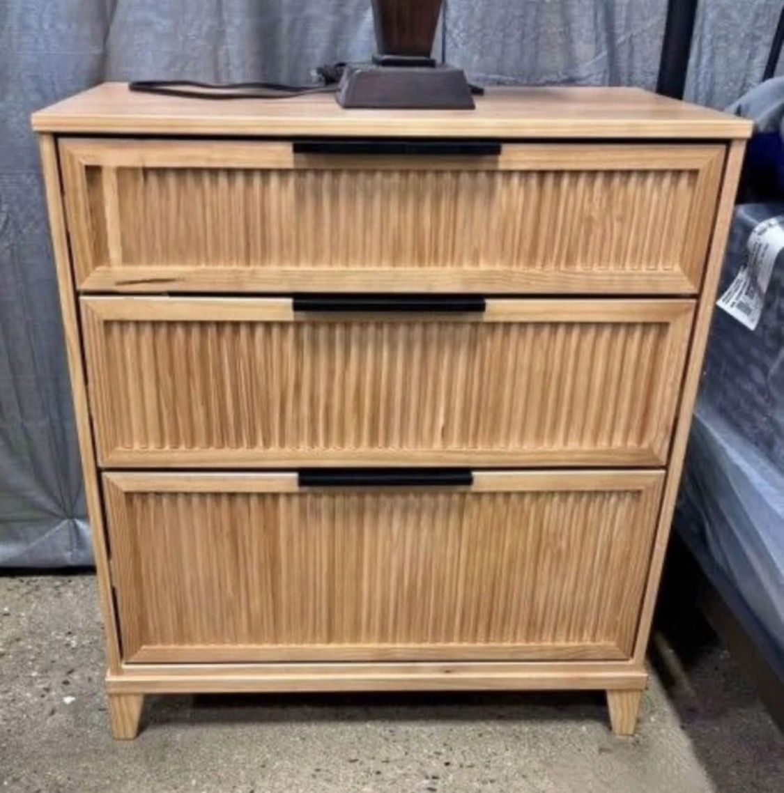 New Scandinavian Reeded 3-Drawer Solid Wood Transitional Dresser Dimensions: 31” H x 29.38” L x 17.63” W * Reeded drawer fronts add a touch of texture * Sleek metal hardware lends minimalist style * Features 3-drawers in small, medium, and large sizes * Suitable for boho, mid-century modern, or contemporary homes * Made from responsibly sourced solid pine wood * Fully Assembled * Verified Trusted Seller / Read/ See My Reviews! Follow Me For Amazing Deals Listed Daily!