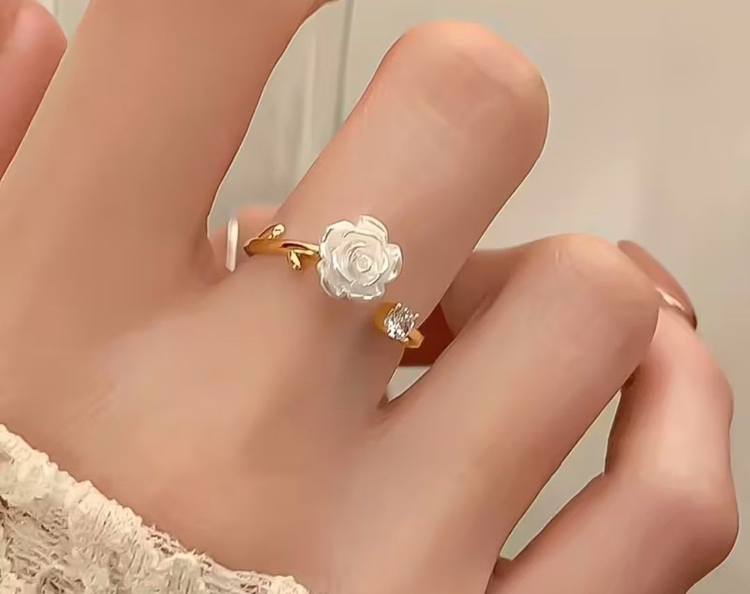 Cute Mini Cream Colored Rose Open Front Gold Tone Ring